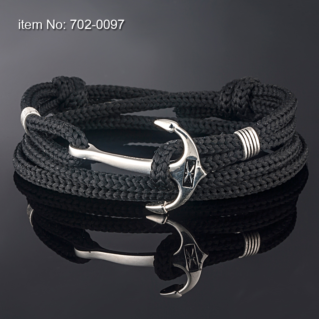 Ασημένιο βραχιόλι άγκυρα με ρυθμιζόμενο κορδόνι