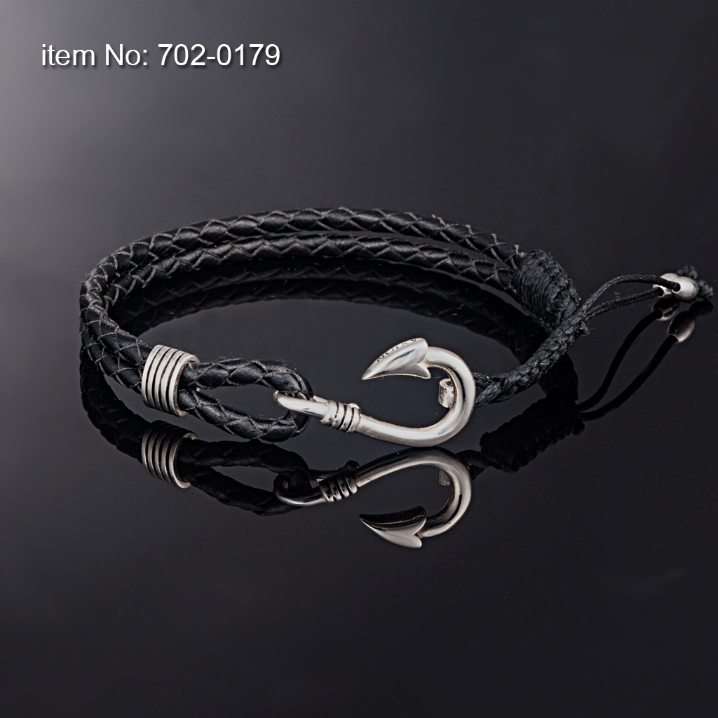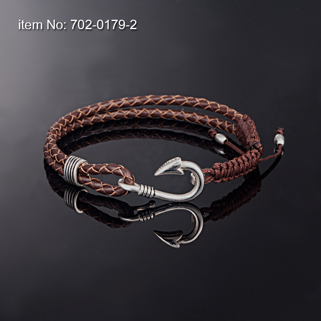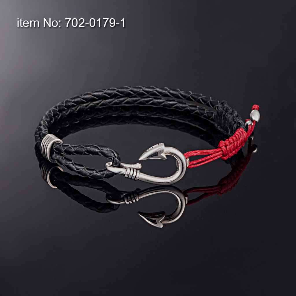 Ασημένιο βραχιόλι Άγκιστρο με ρυθμιζόμενο γνήσιο δέρμα