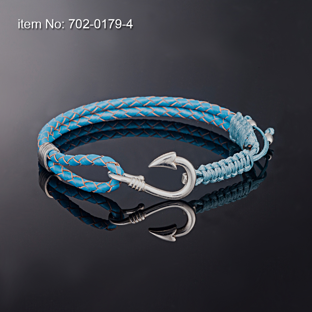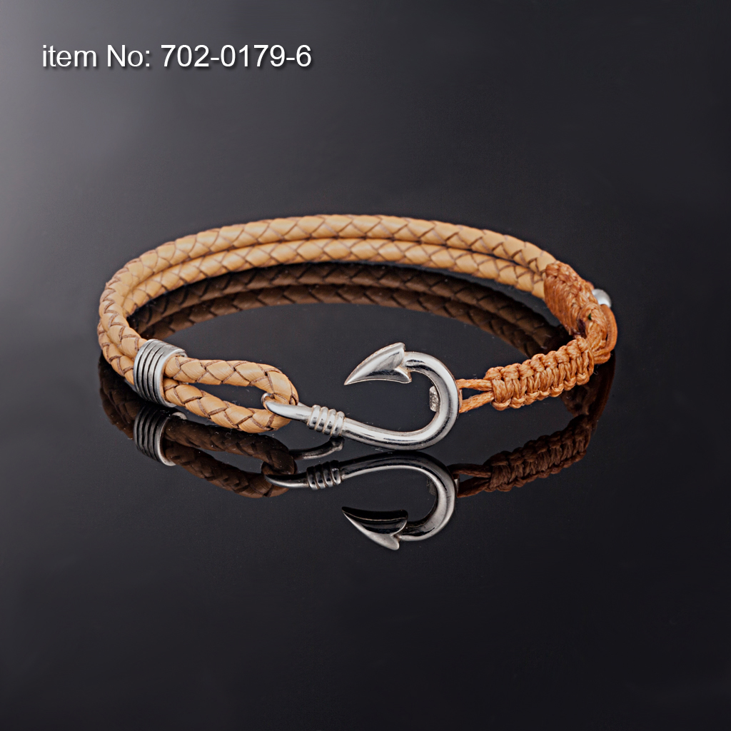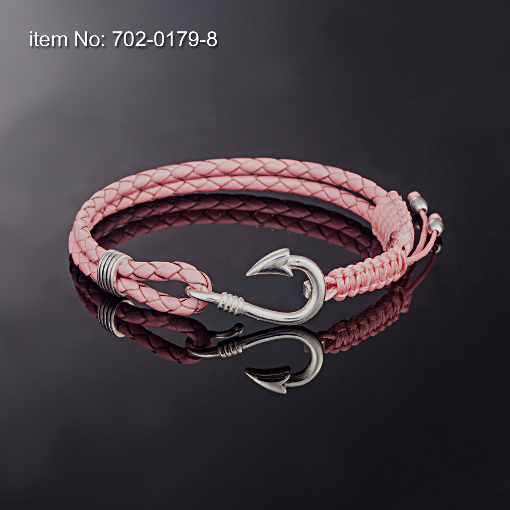 Ασημένιο βραχιόλι Άγκιστρο με ρυθμιζόμενο γνήσιο δέρμα