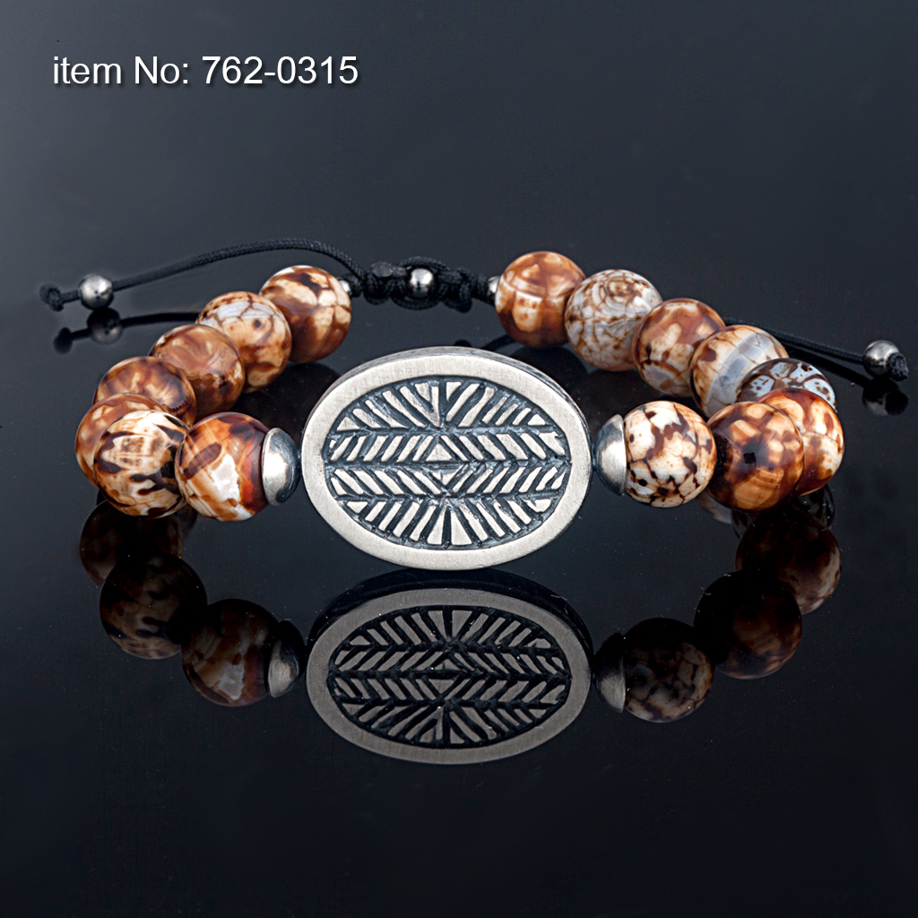 Βραχιόλι ινδιάνικο σύμβολο με jasper Βραχιόλι ινδιάνικο σύμβολο με jasper ή άλλες ημιπολύτιμες πέτρες χάντρες και ασημένια Band Με ρυθμιζόμενο κορδόνι Για άνδρες και κυρίες Hand crafted in Greeceby AXION JEWELRY DESIGN