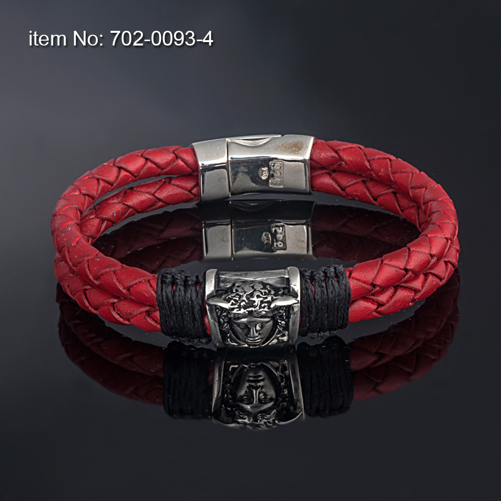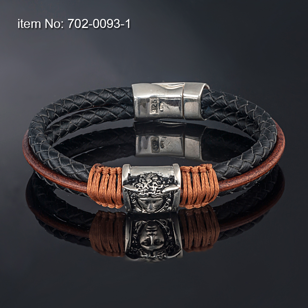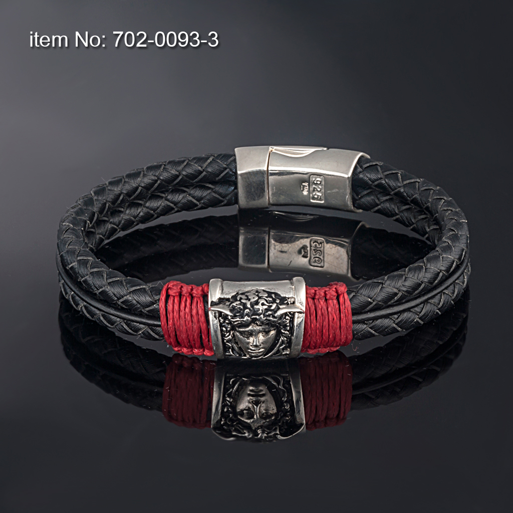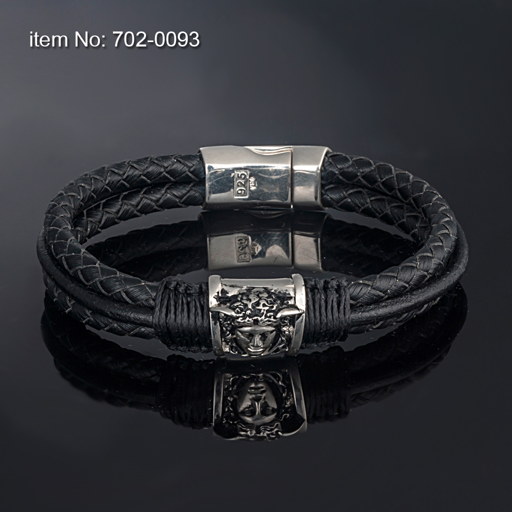 Ασημένιο βραχιόλι με δέρμα και Μέδουσα