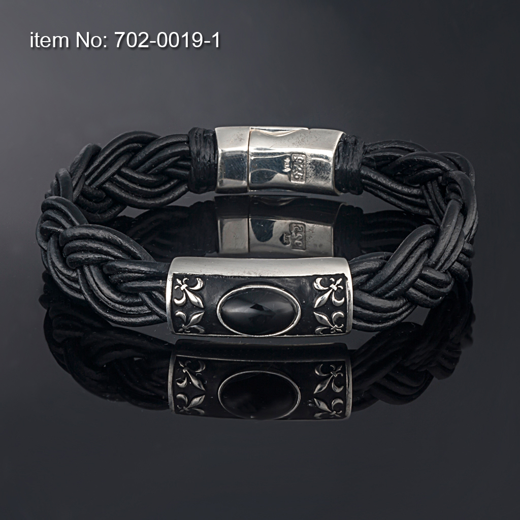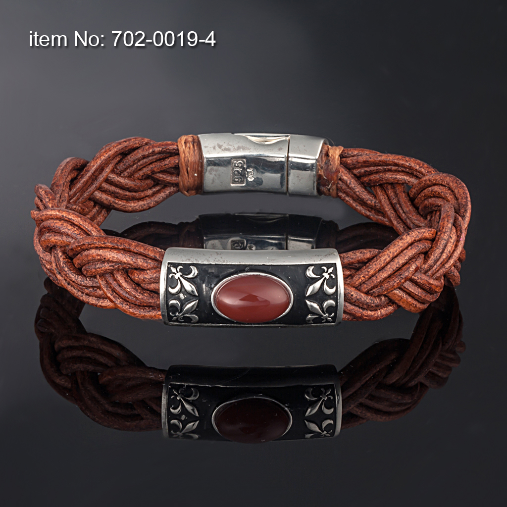 Ασημένιο βραχιόλι, με κέντρο Cabochon πέτρα, ημιπολύτιμο λίθο και κρίνα