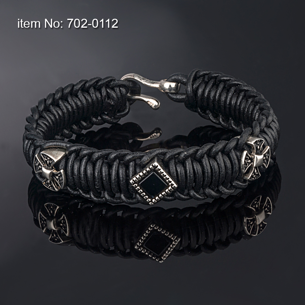 Ασημένιο βραχιόλι, με κεντρικό μαύρο όνυχα και Σταυρό της Μάλτας