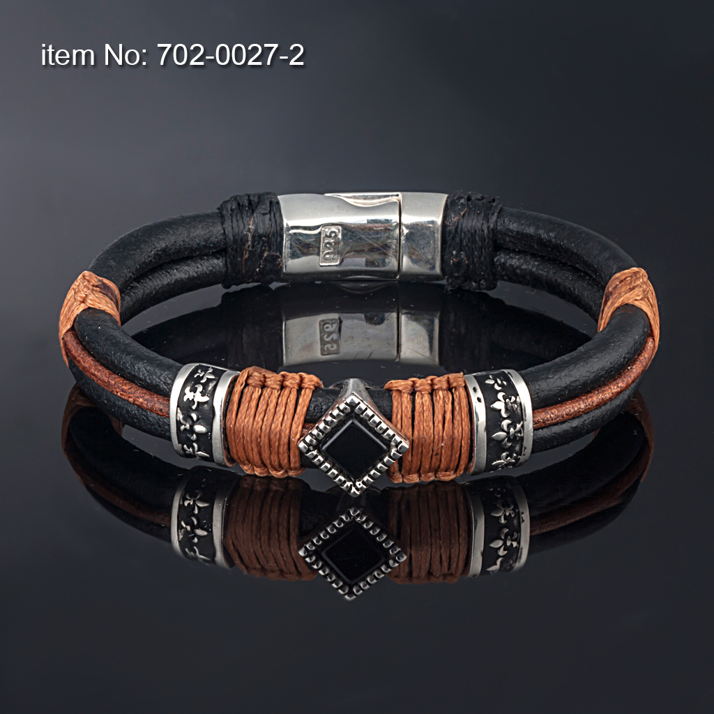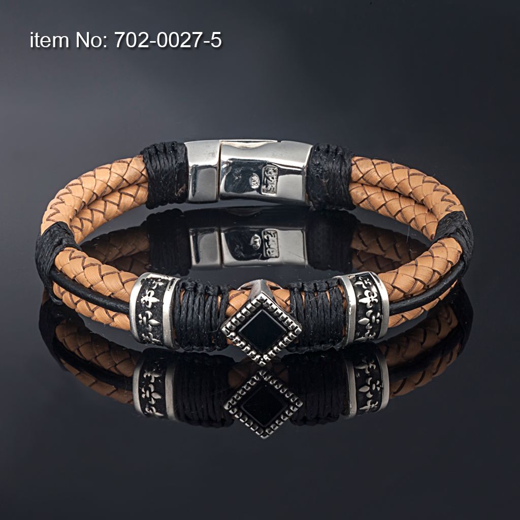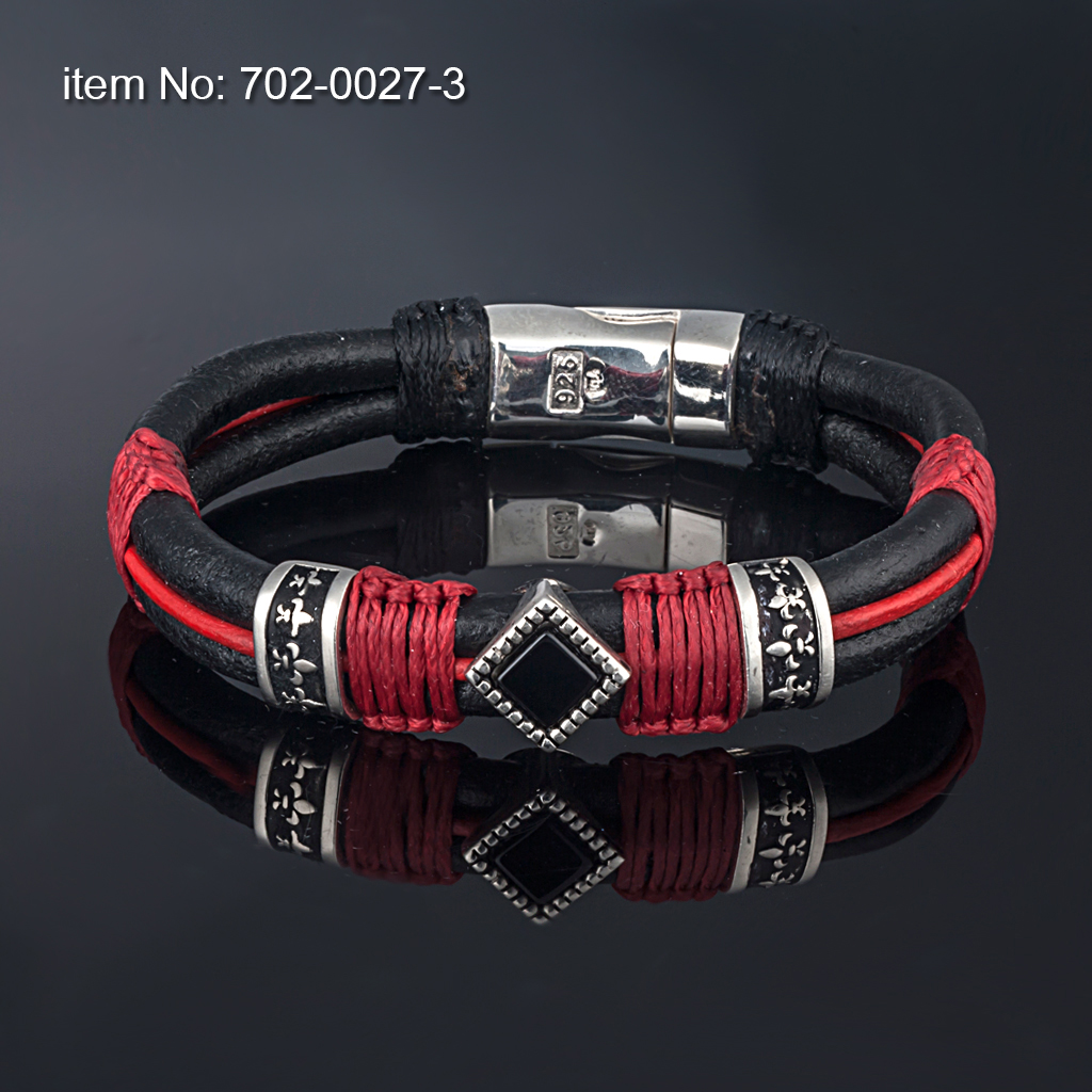 Ασημένιο βραχιόλι, με κεντρικό μαύρο όνυχα και περιβάλλεται από δύο κρίνα