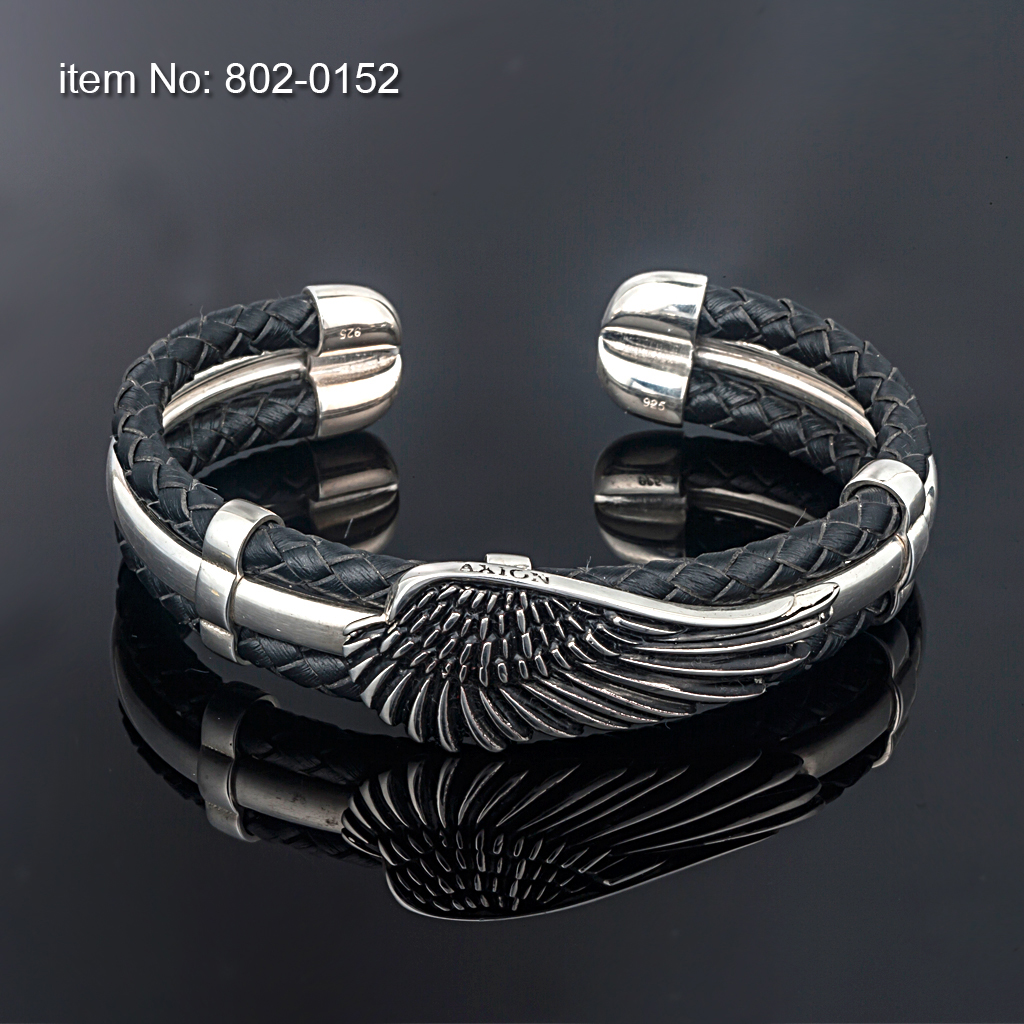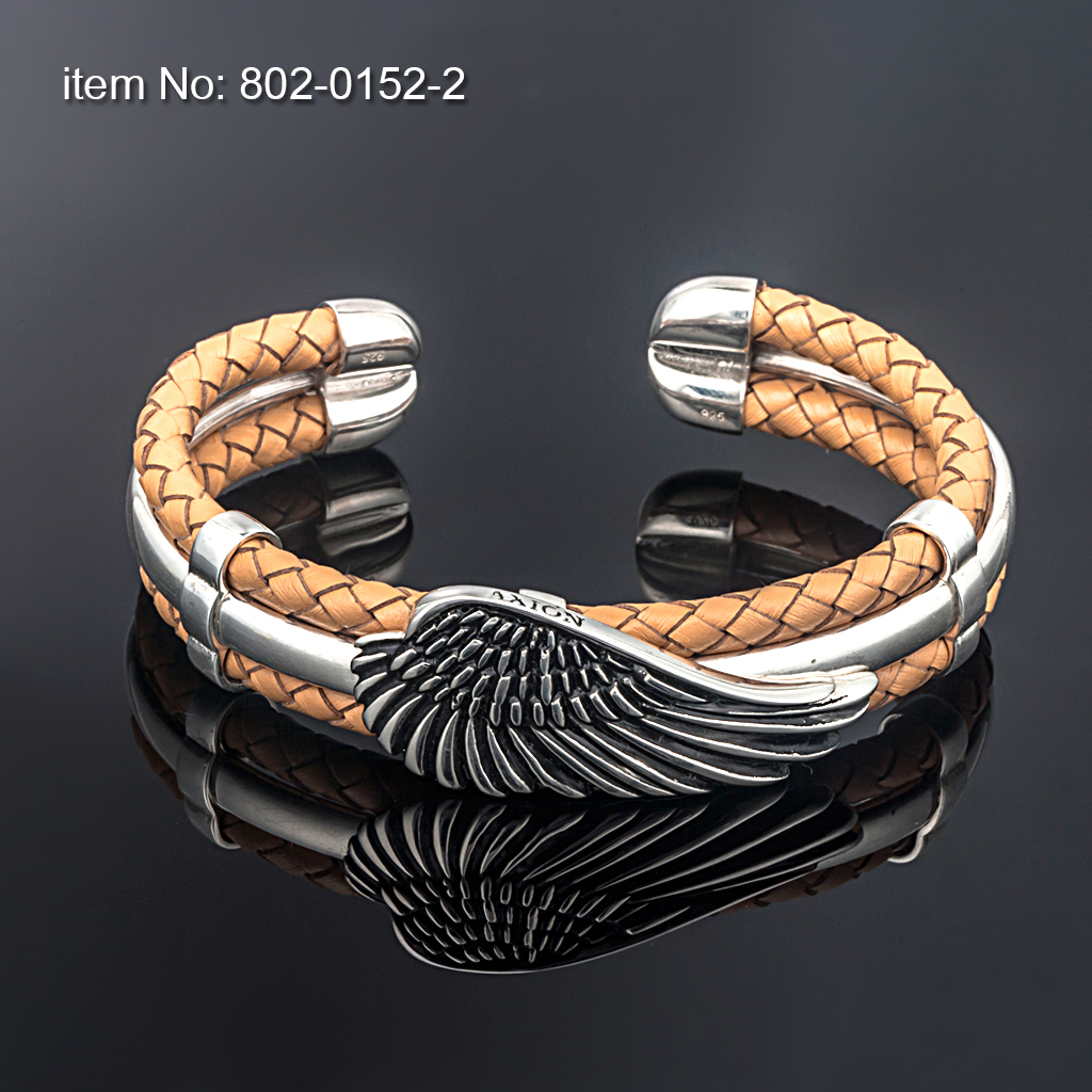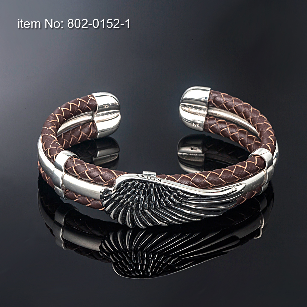 Ασημένιο εύκαμπτο βραχιόλι με γνήσιο δέρμα