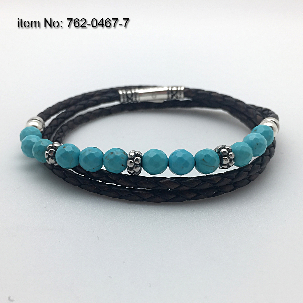925°Ασημένιο Βραχιόλι με μοτίφ και διπλή αλυσίδα και δέρμα σε 6 mm howlite
