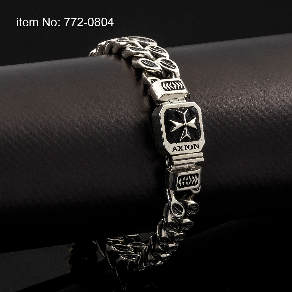 Ασημένιο 925° μασίφ βραχιόλι με υπογραφή AXION και κουβανέζικο σύνδεσμο πλάτους 12 mm