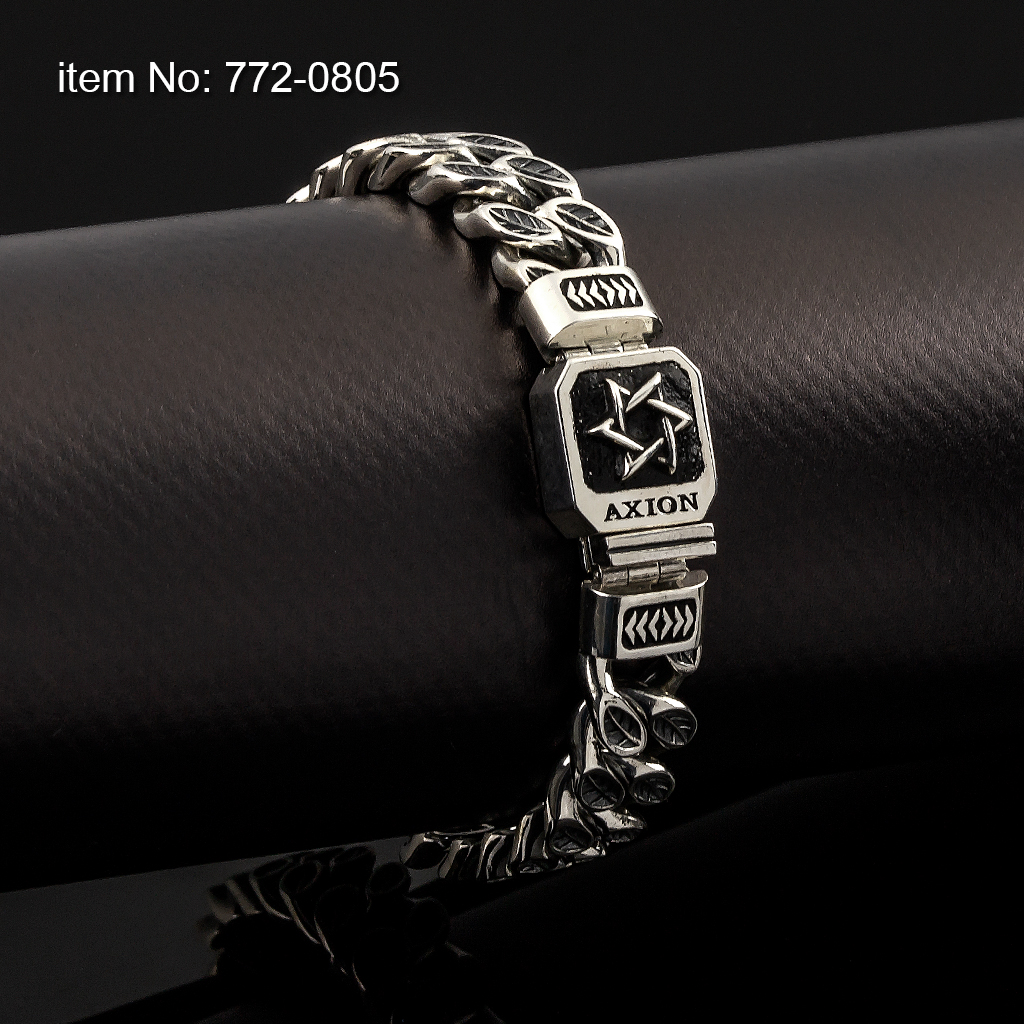Ασημένιο 925° μασίφ βραχιόλι με υπογραφή AXION και κουβανέζικο σύνδεσμο πλάτους 12 mm