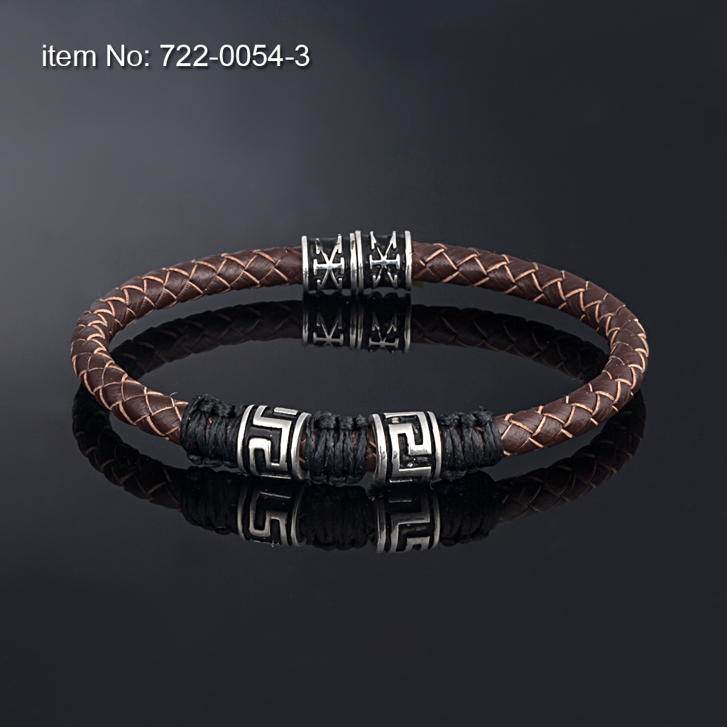 Ασημένιο βραχιόλι με μοτίφ (5 mm) και με γνήσιο δέρμα