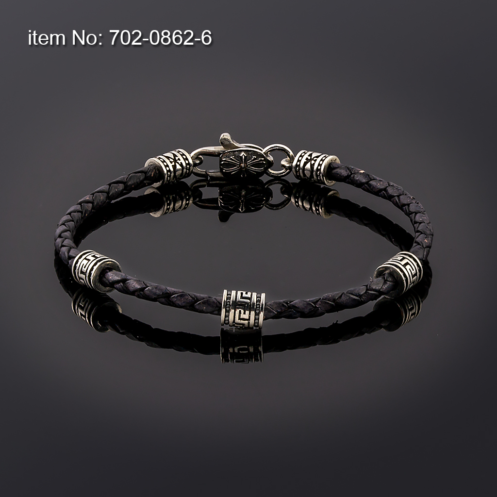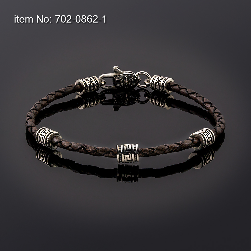 Bracelet with Sterling Silver with greek motifs and braided genuine leather