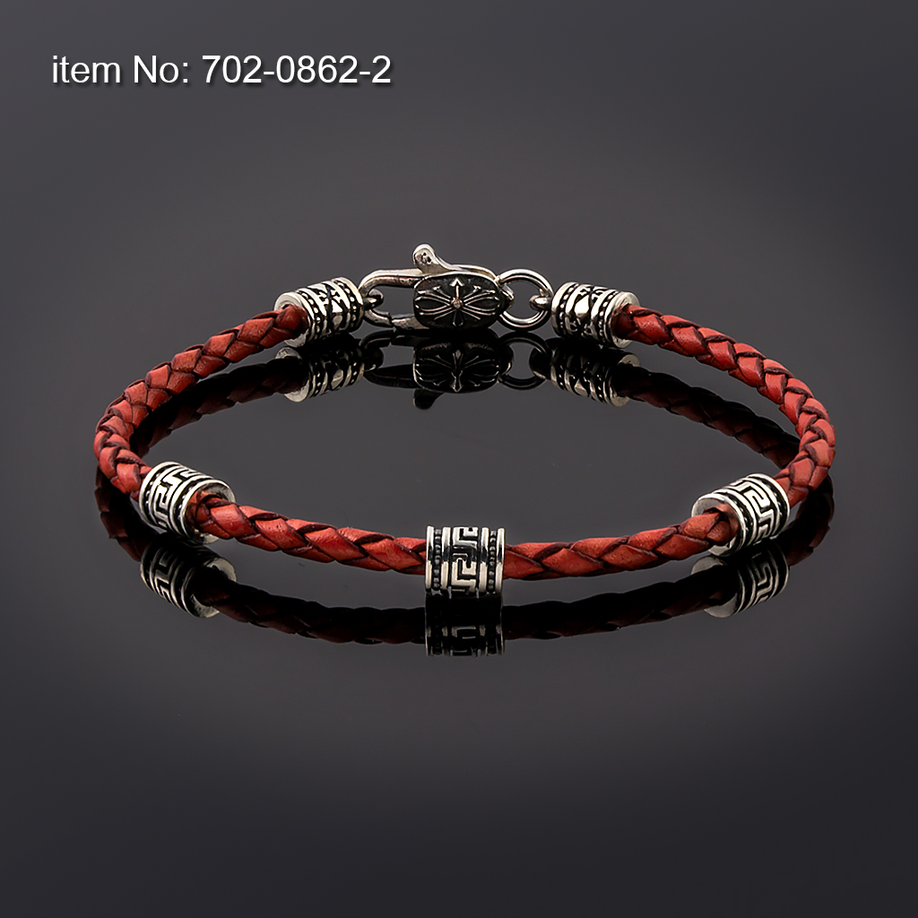 Bracelet with Sterling Silver with greek motifs and braided genuine leather - Click here for more colors -