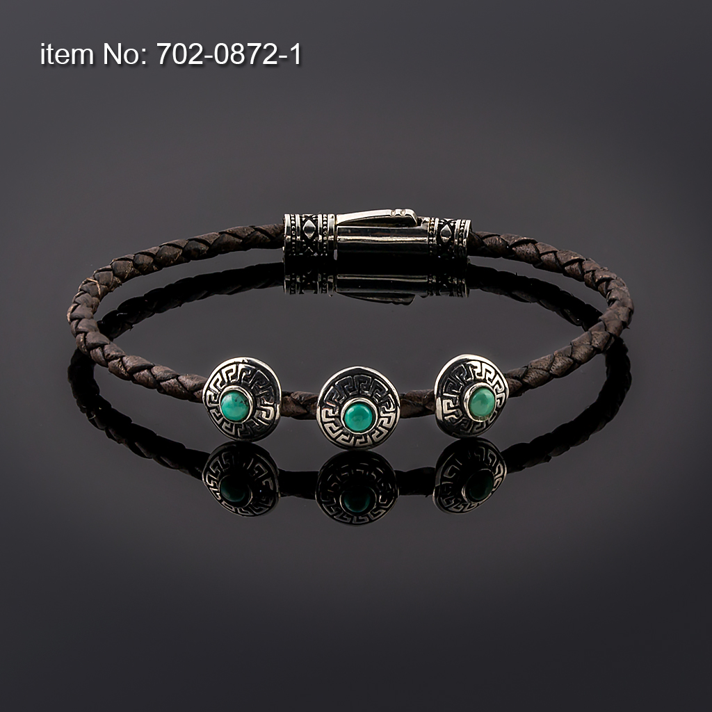 925° Ασημένιο βραχιόλι με σχέδιο γκρέκα & γνήσιο πλεκτό δέρμα - Πατήστε εδώ για περισσότερα χρώματα -