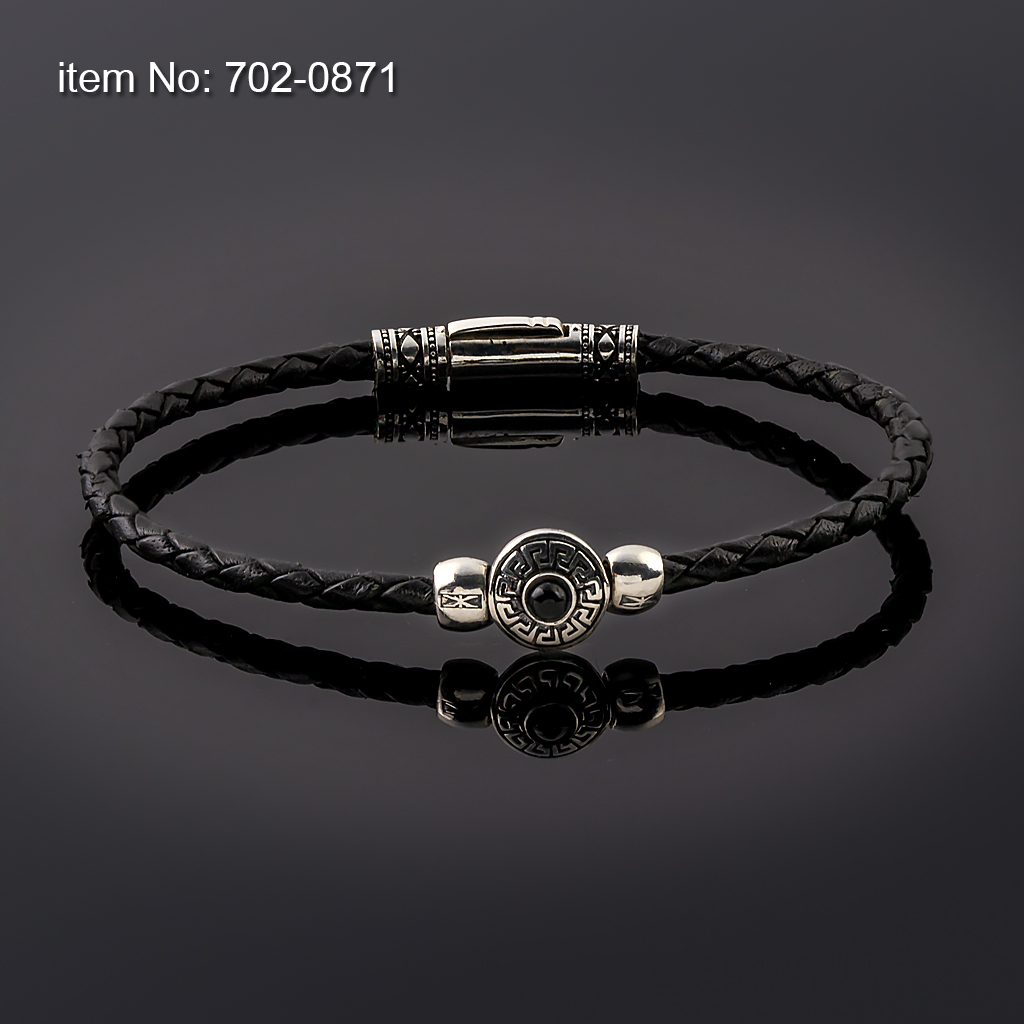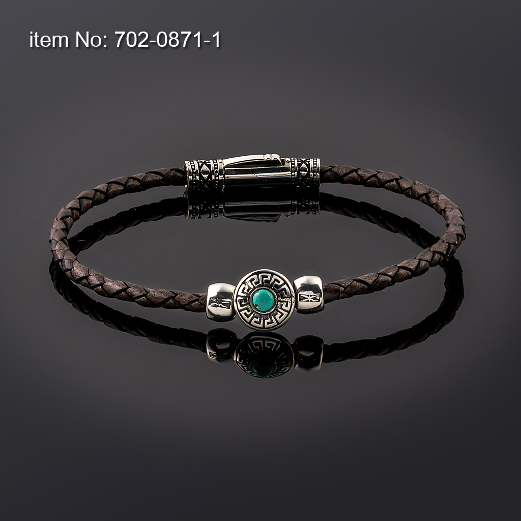 Bracelet with Sterling Silver with greek design and braided genuine leather