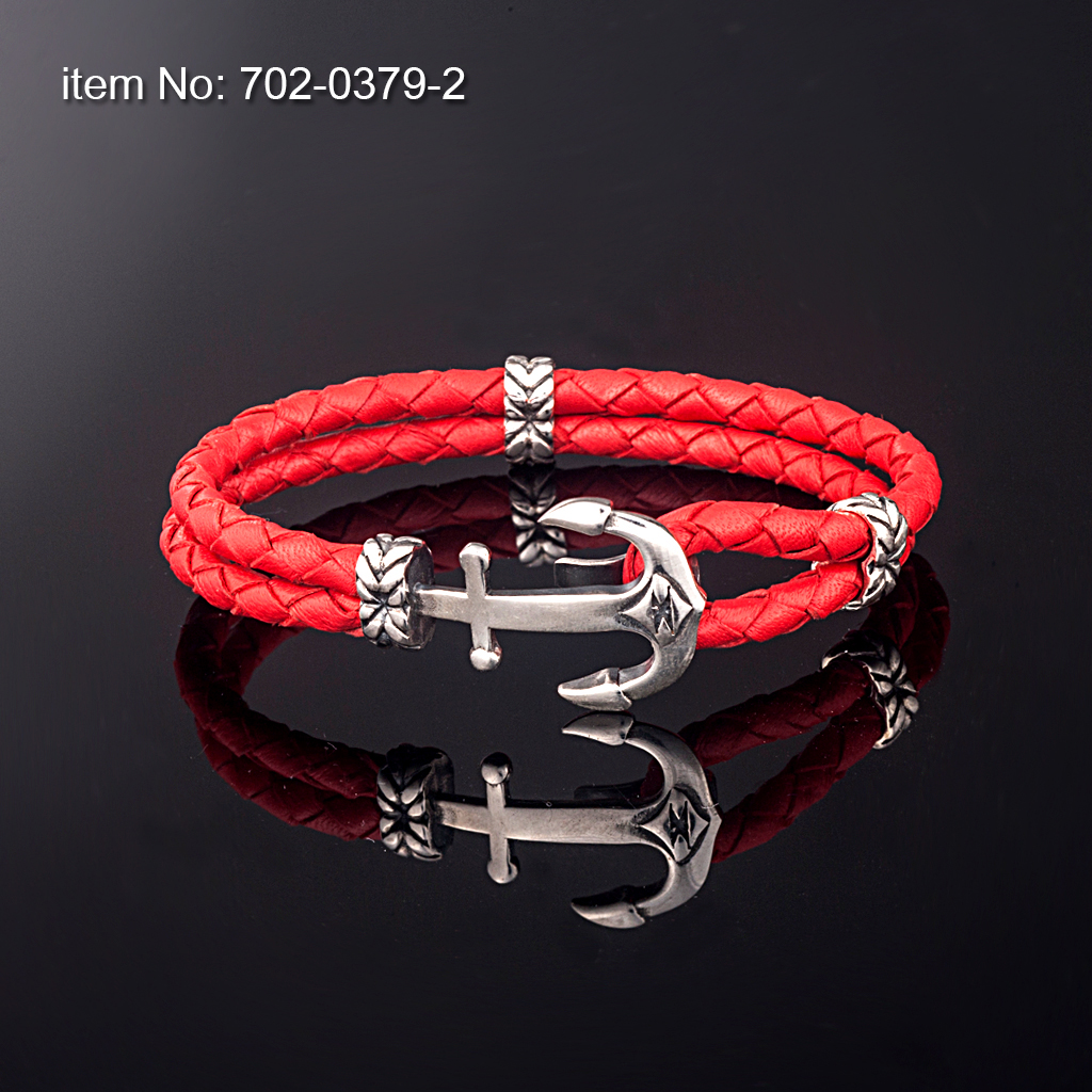 Ασημένιο βραχιόλι 925° με μικρή άγκυρα (21 mm) και με γνήσιο διπλό στρογγυλό δέρμα κόκκινο