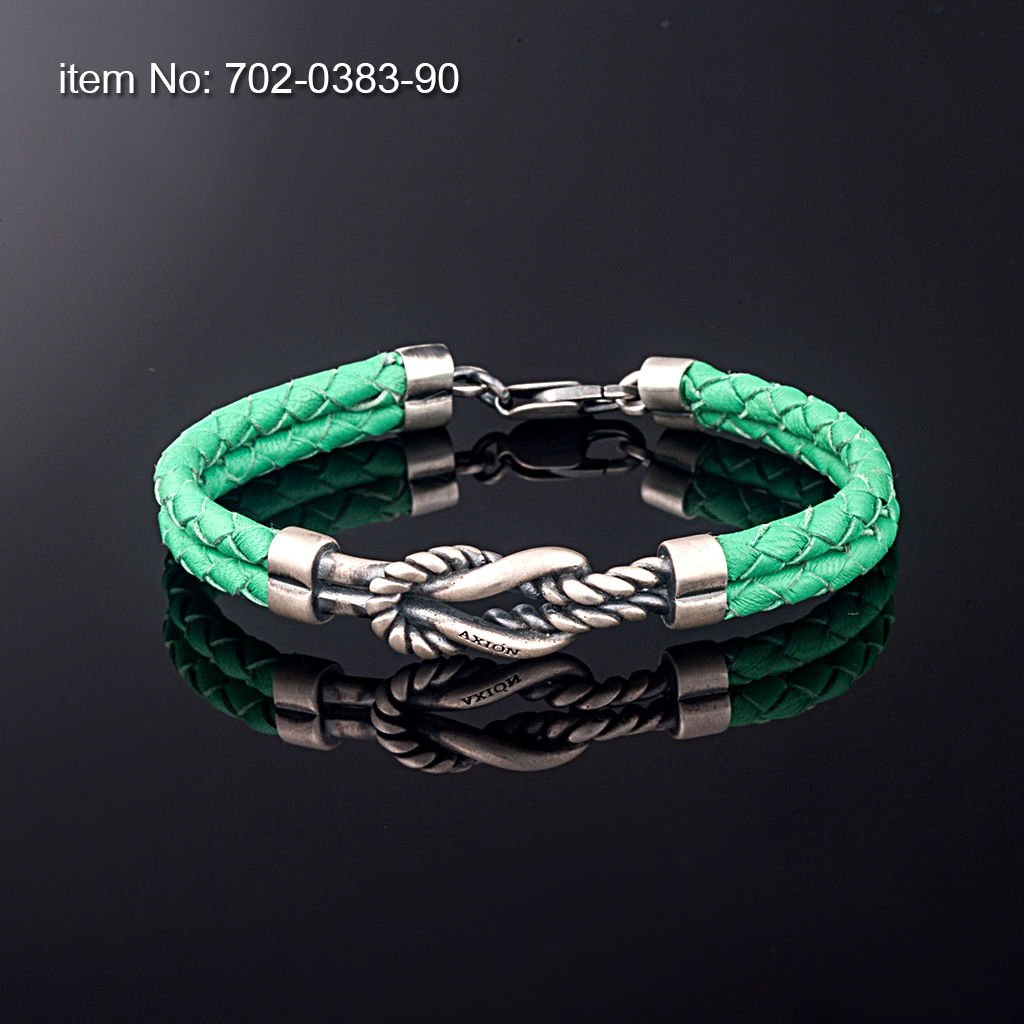 Ασημένιο βραχιόλι 925° με ναυτικό κόμπο και με γνήσιο πλεκτό δέρμα πράσινο - Πατήστε εδώ για περισσότερα χρώματα -