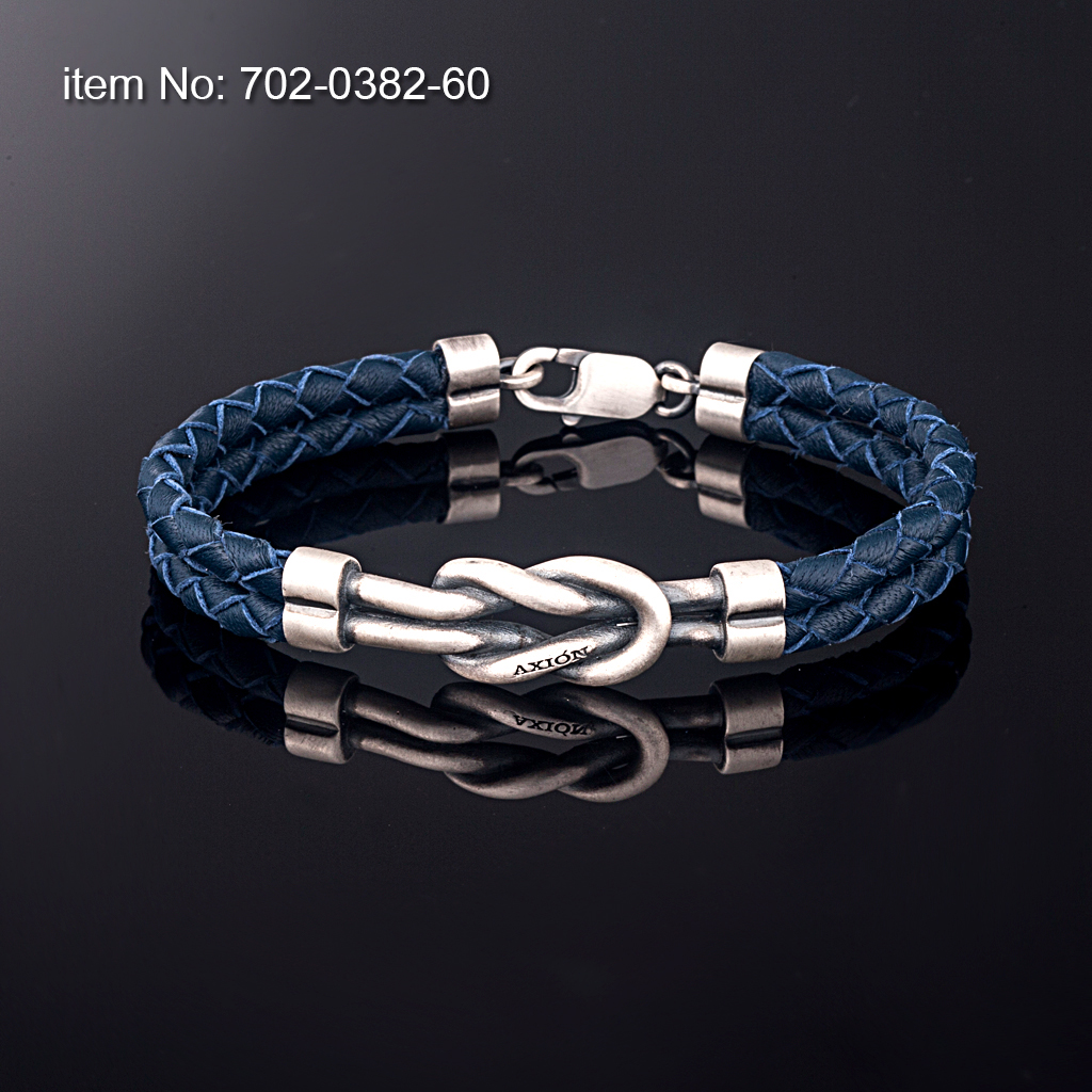Ασημένιο βραχιόλι 925° με ναυτικό κόμπο και με γνήσιο πλεκτό δέρμα κίτρινο