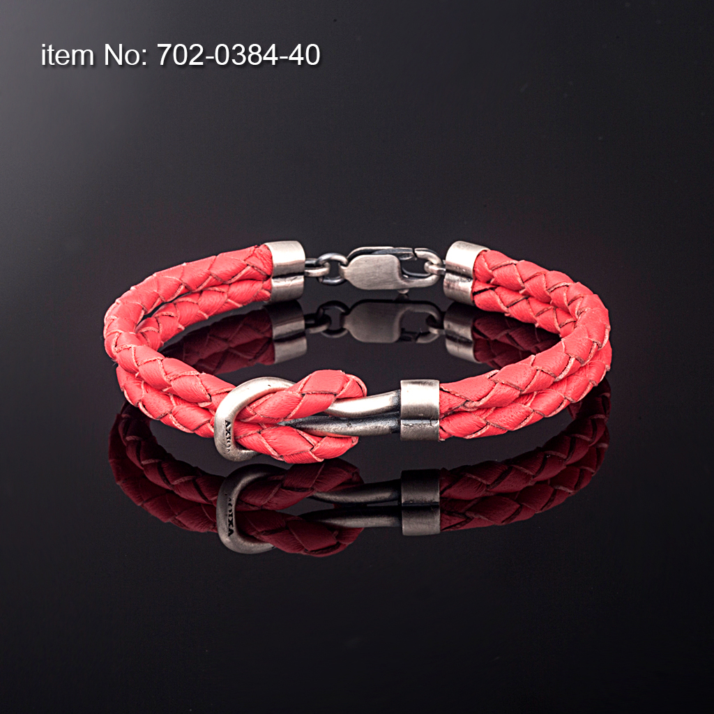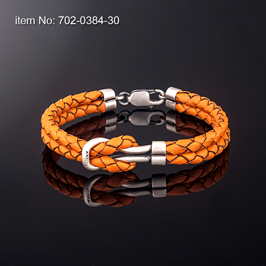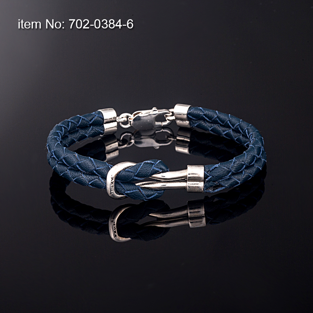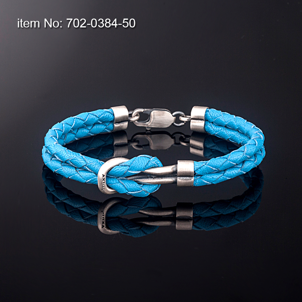 Ασημένιο βραχιόλι 925° με ναυτικό κόμπο με γνήσιο πλεκτό δέρμα μπλέ - Πατήστε εδώ για περισσότερα χρώματα -