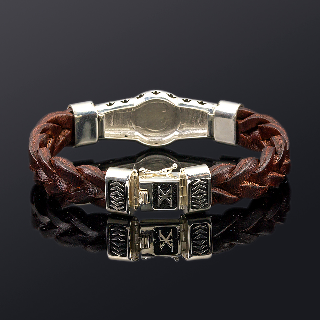 Ασημένιο Βραχιόλι 925° με γνήσιο καφέ δέρμα 12mm