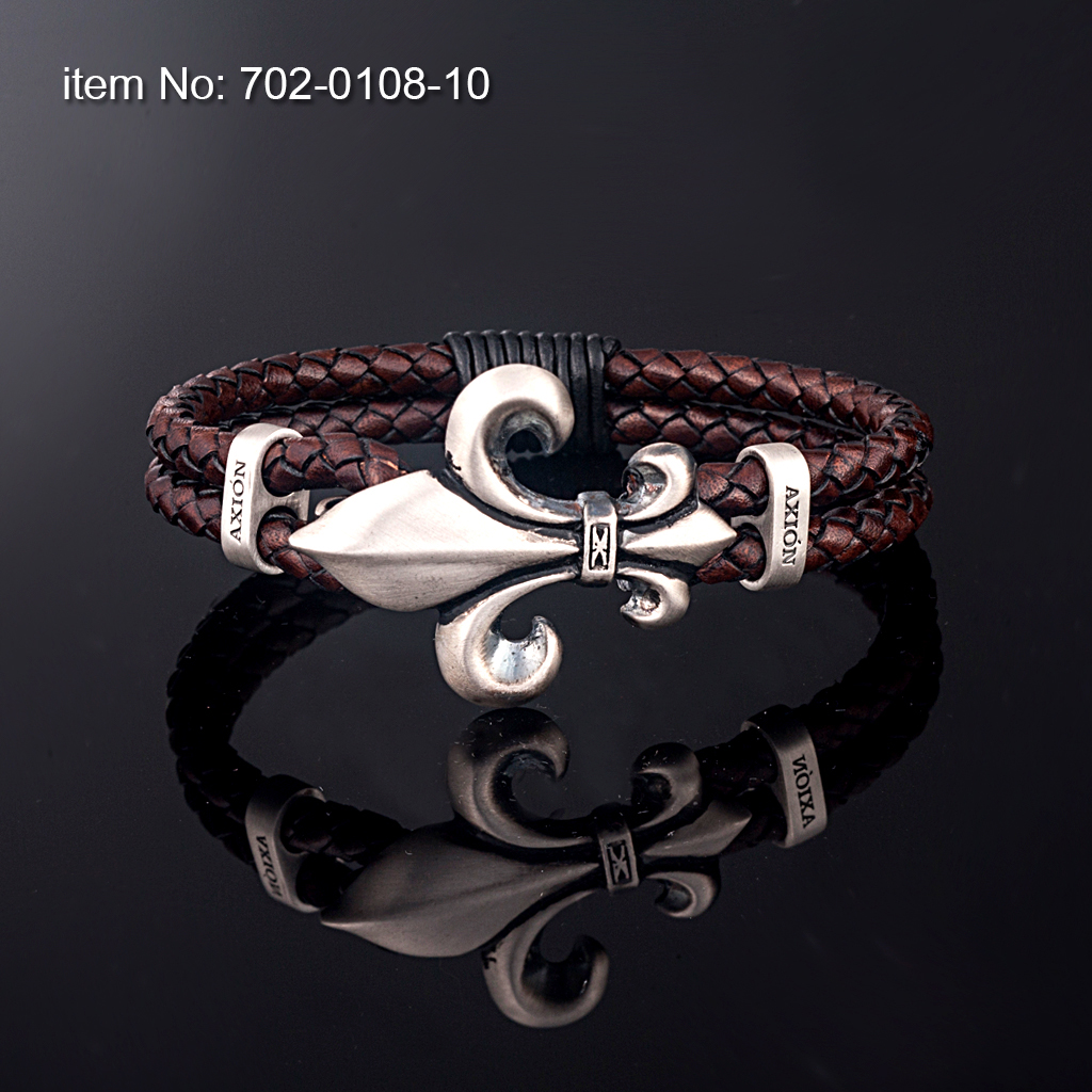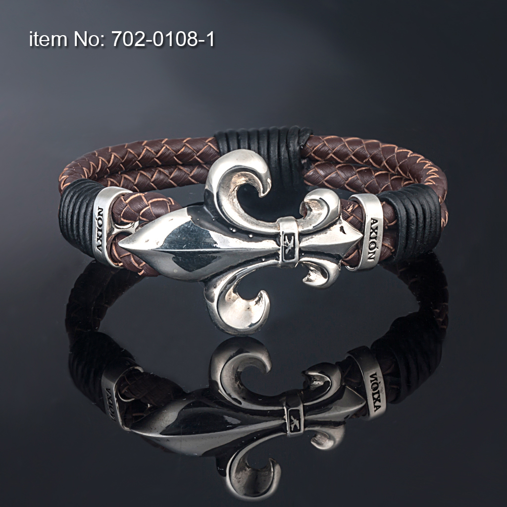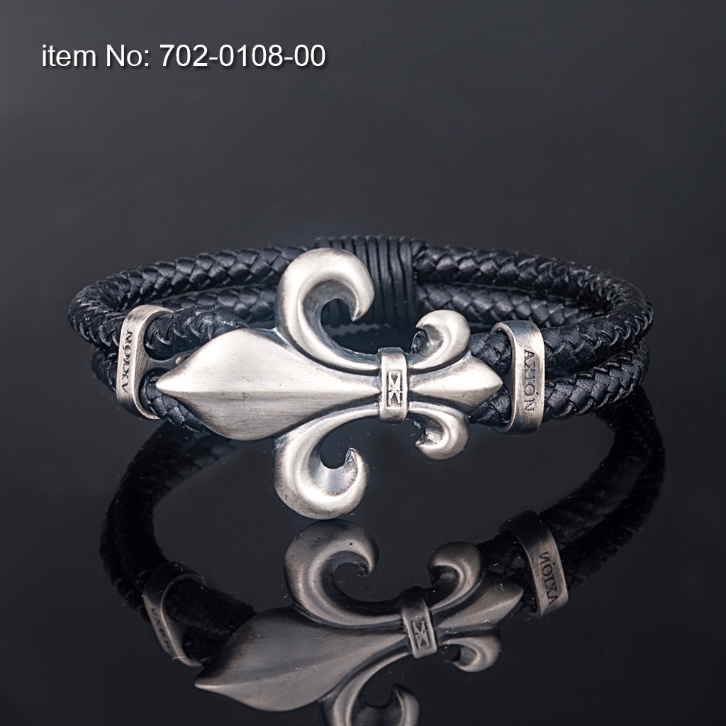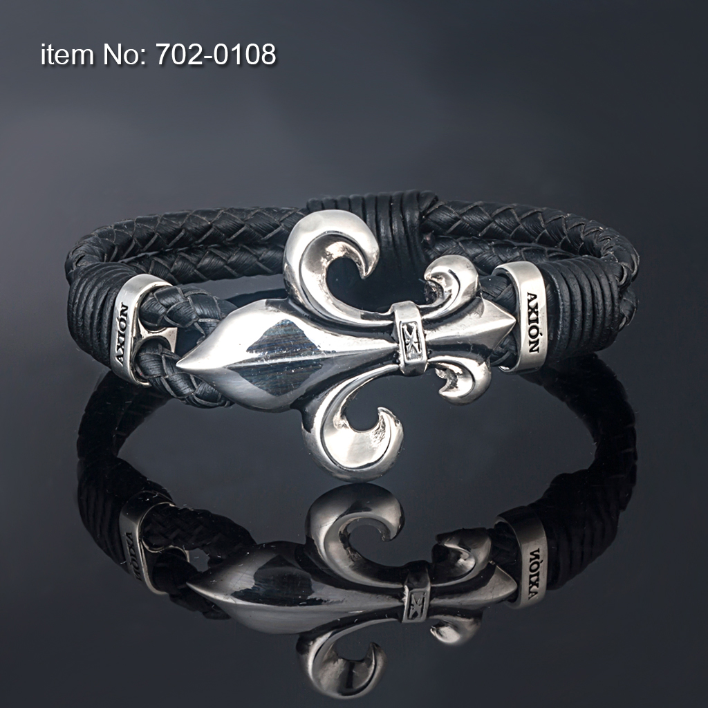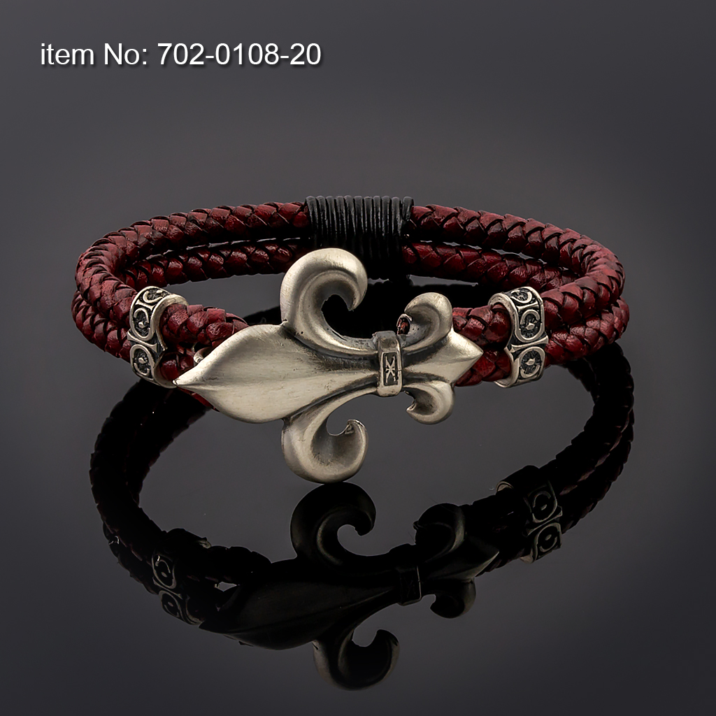 Μεγάλο ασημένιο βραχιόλι κρίνα, περιβάλλεται από δύο ασημένια μοτίφ - Πατήστε εδώ για περισσότερα χρώματα -