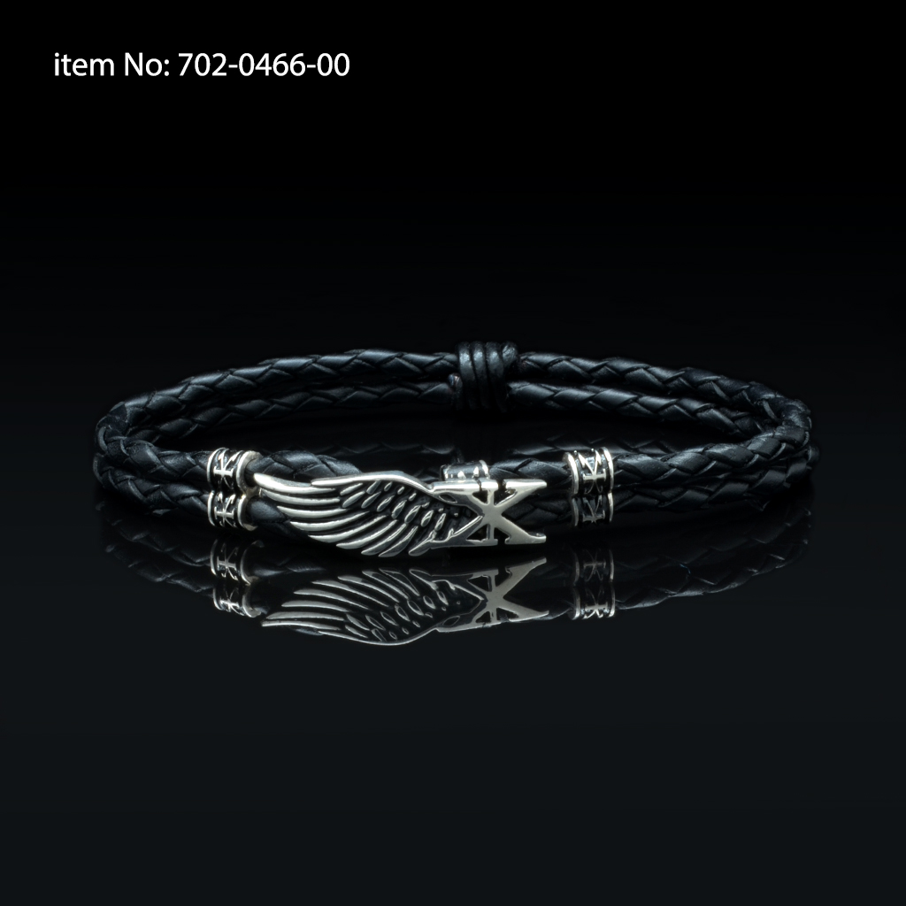 925°Ασημένιο Βραχιόλι με μοτίφ φτερό Axion και με γνήσιο πλεκτό δέρμα - Πατήστε εδώ για περισσότερα χρώματα -