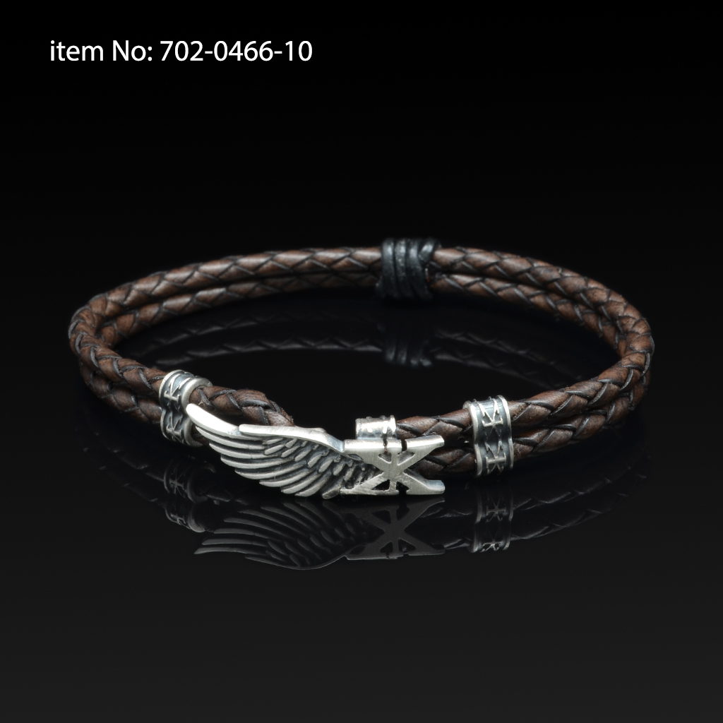 925°Ασημένιο Βραχιόλι με μοτίφ φτερό Axion και με γνήσιο πλεκτό δέρμα