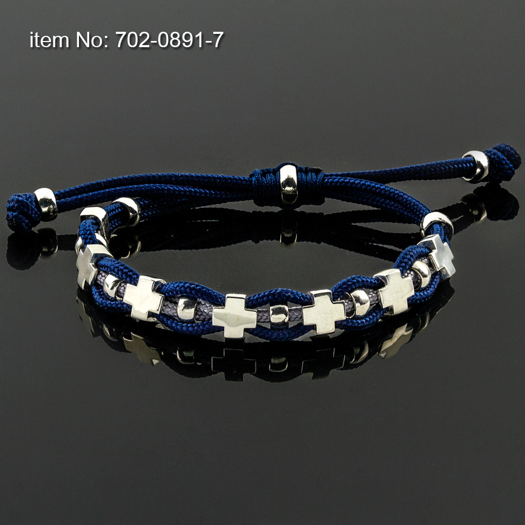 Ασημένιο βραχιόλι με μοτίφ Σταυρούς και με υψηλής ποιότητας συνθετικό paracord