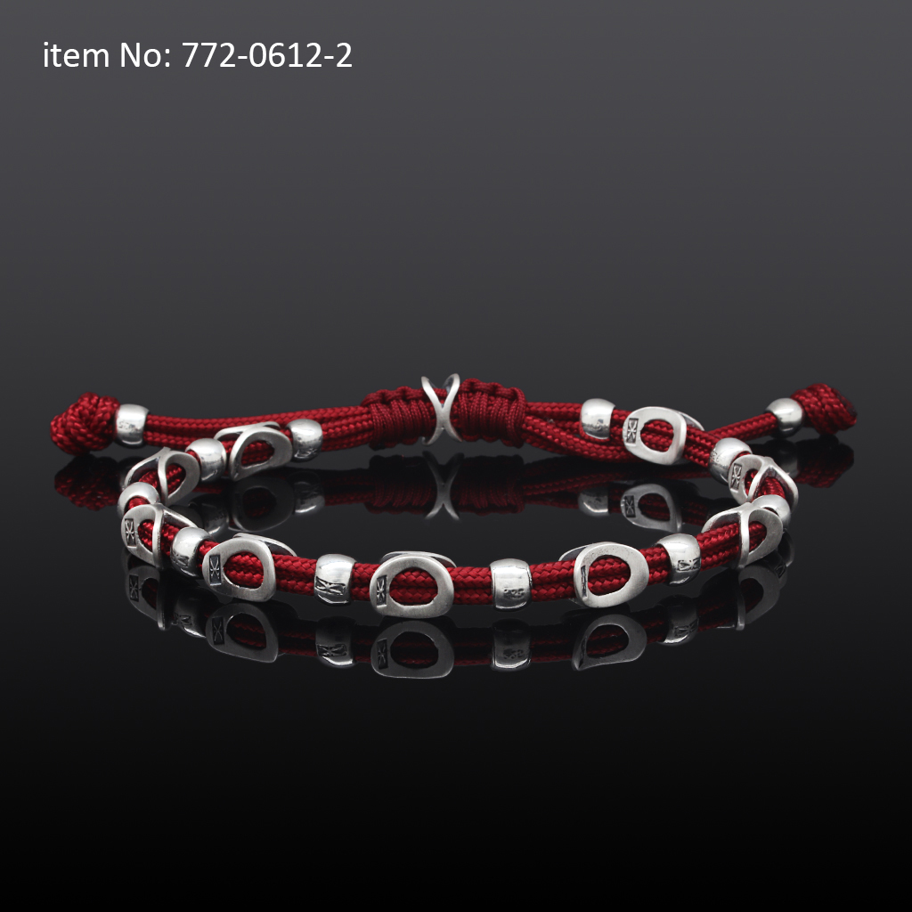 925° Ασημένιο βραχιόλι με ροδέλες, κρίκους Axion και κόκκινο κορδόνι - Πατήστε εδώ για περισσότερα χρώματα -