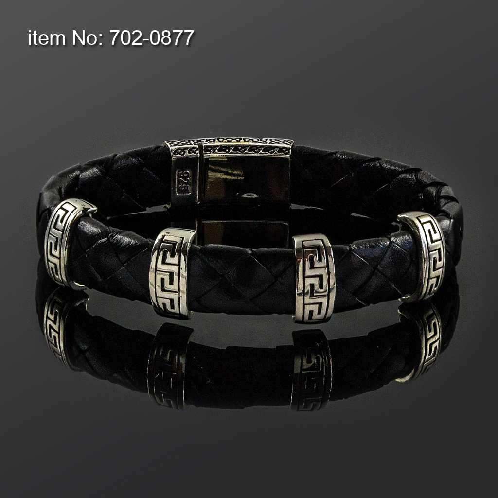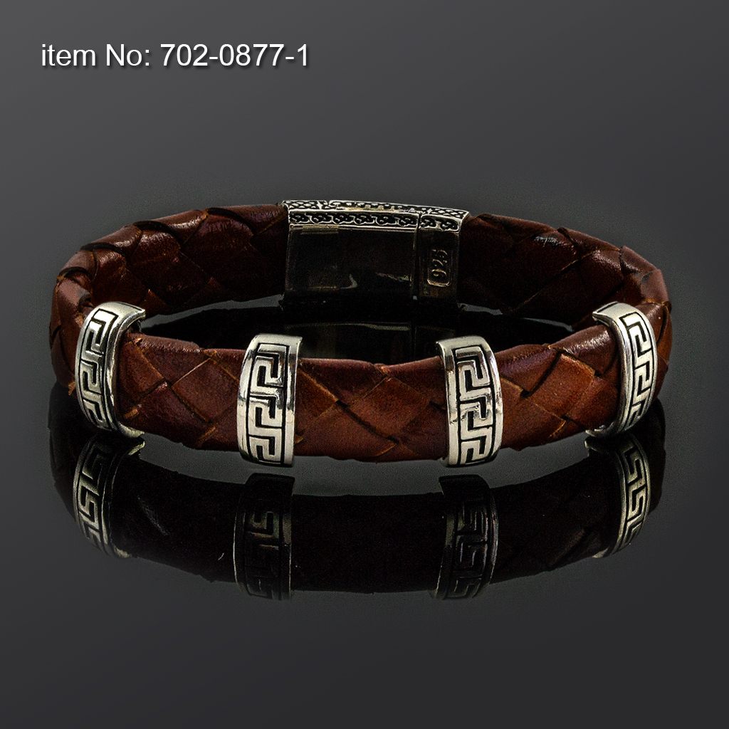 Ασημένιο βραχιόλι με μαίανδρο μοτιφ, και με γνήσιο δέρμα - Πατήστε εδώ για περισσότερα χρώματα -