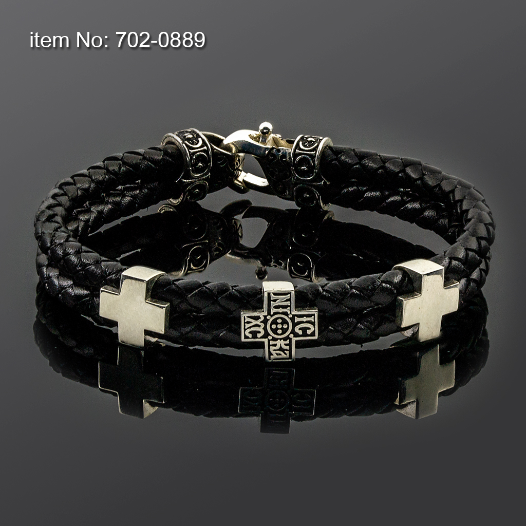 Bracelet with Sterling Silver Crosses motif and braided genuine leather