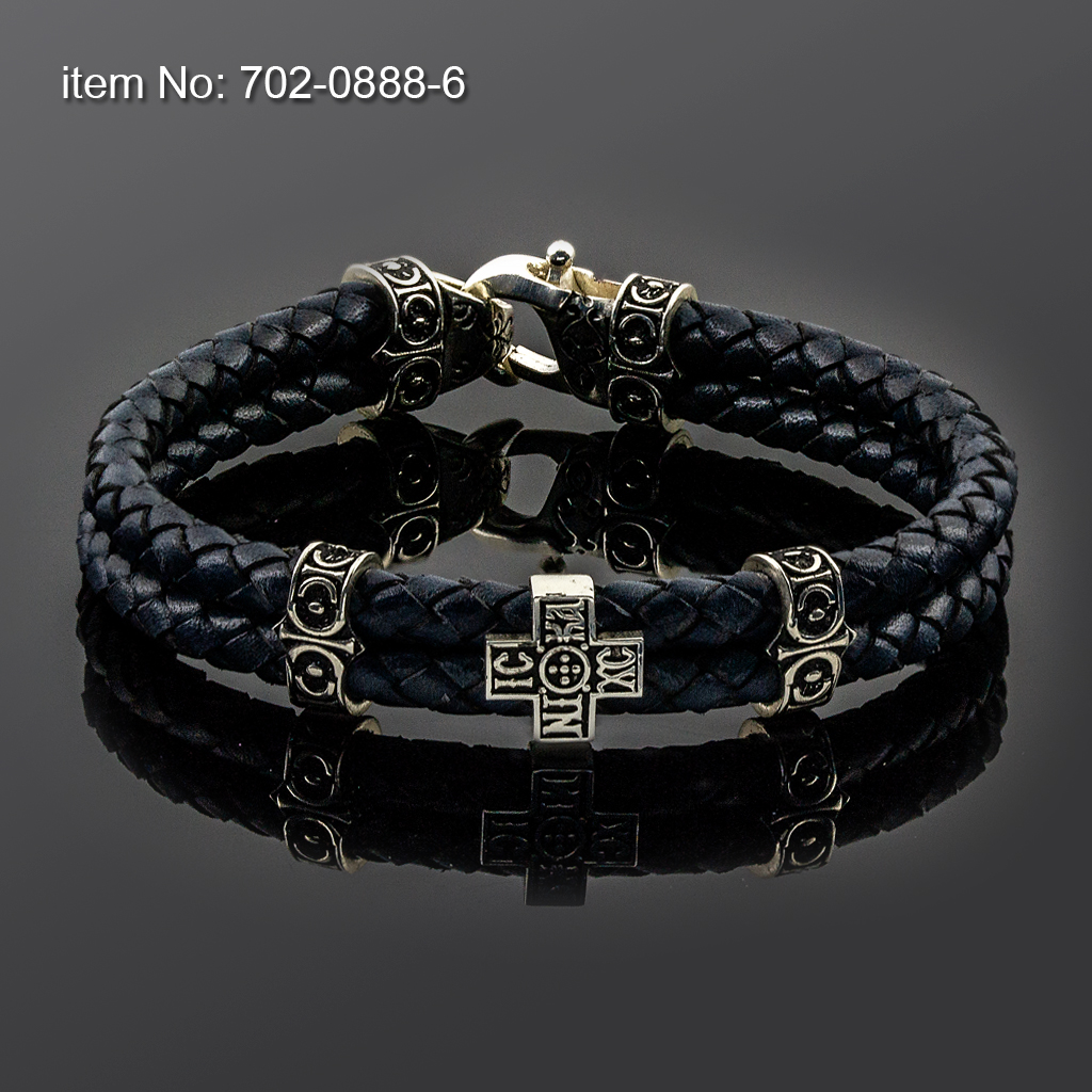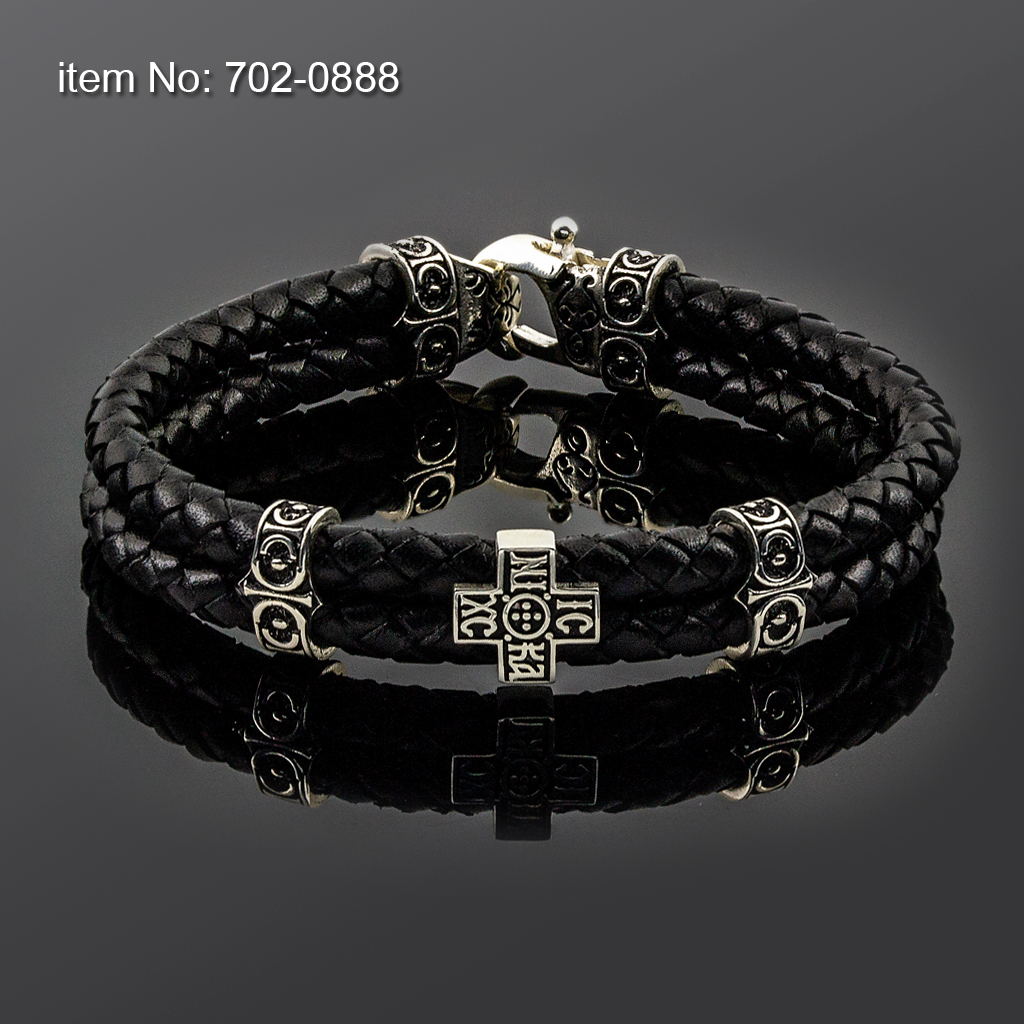 Ασημένιο βραχιόλι με μοτίφ Σταυρό και με γνήσιο πλεκτό δέρμα - Πατήστε εδώ για περισσότερα χρώματα -