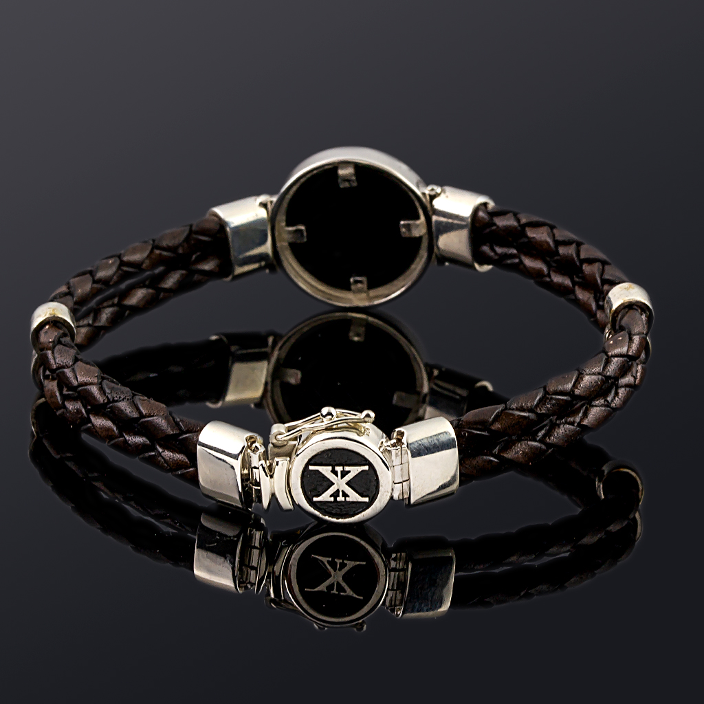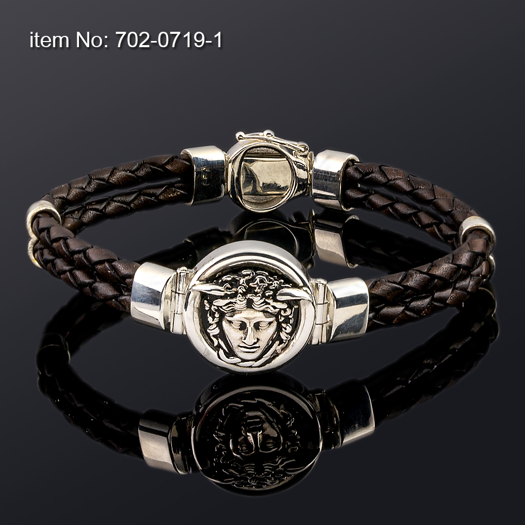 Ασημένιο Βραχιόλι 925° μέδουσα 20mm και γνήσιο καφέ δέρμα 4mm