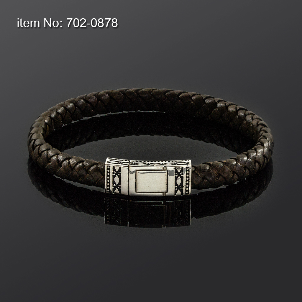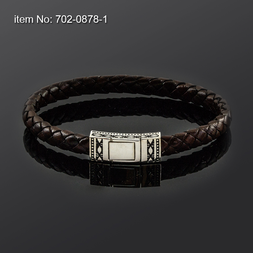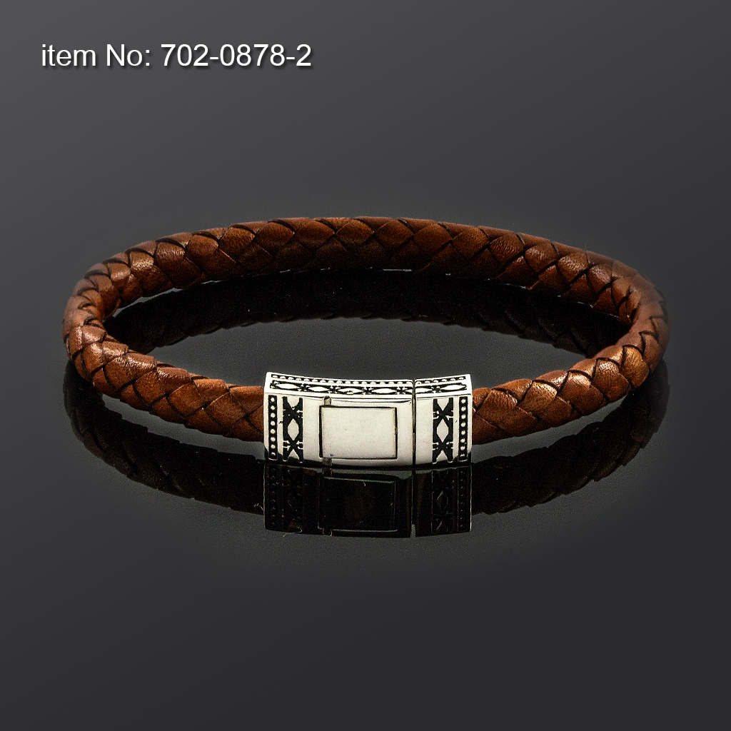 Ασημένιο βραχιόλι 925° με μοτίφ Axion και με γνήσιο πλεκτό δέρμα - Πατήστε εδώ για περισσότερα χρώματα -