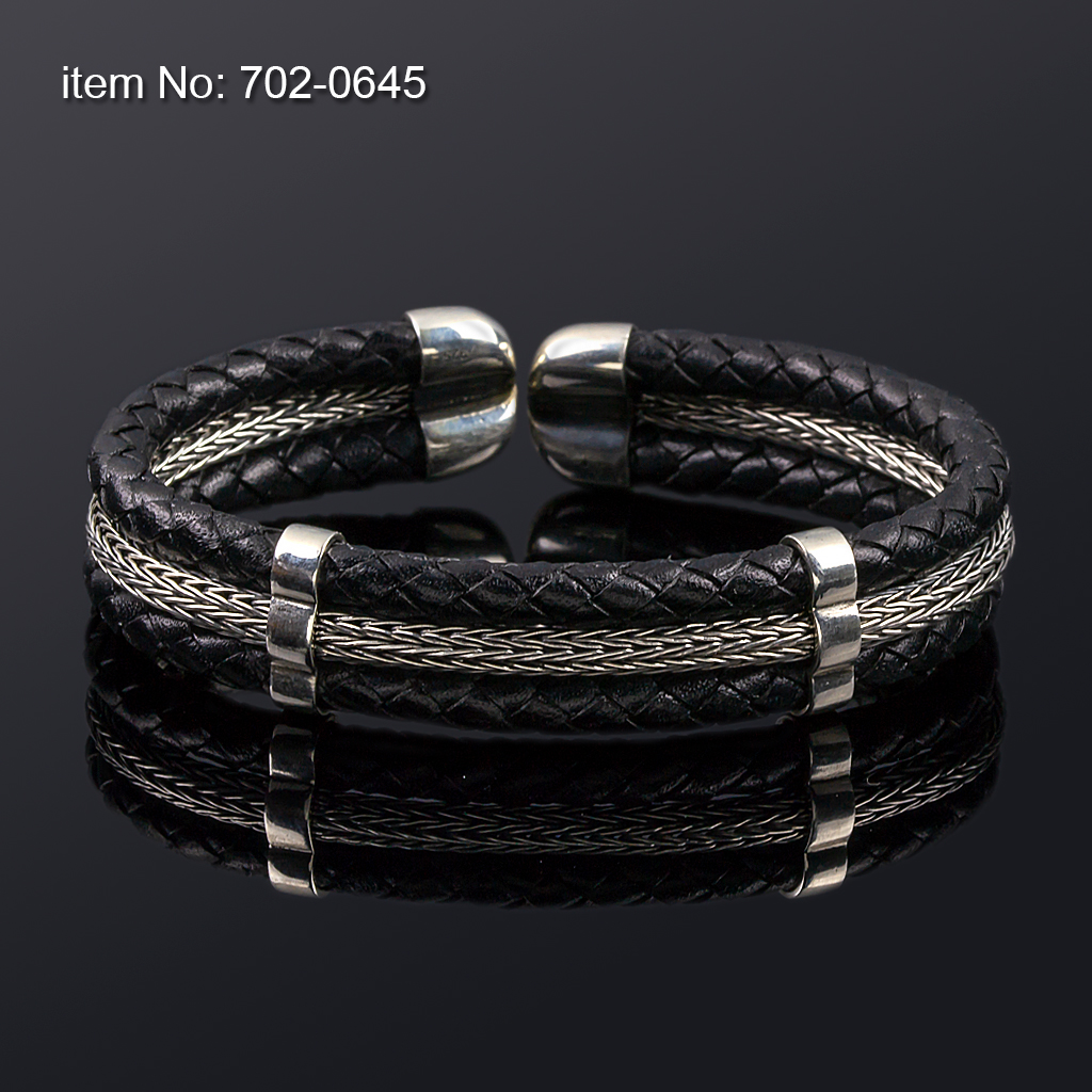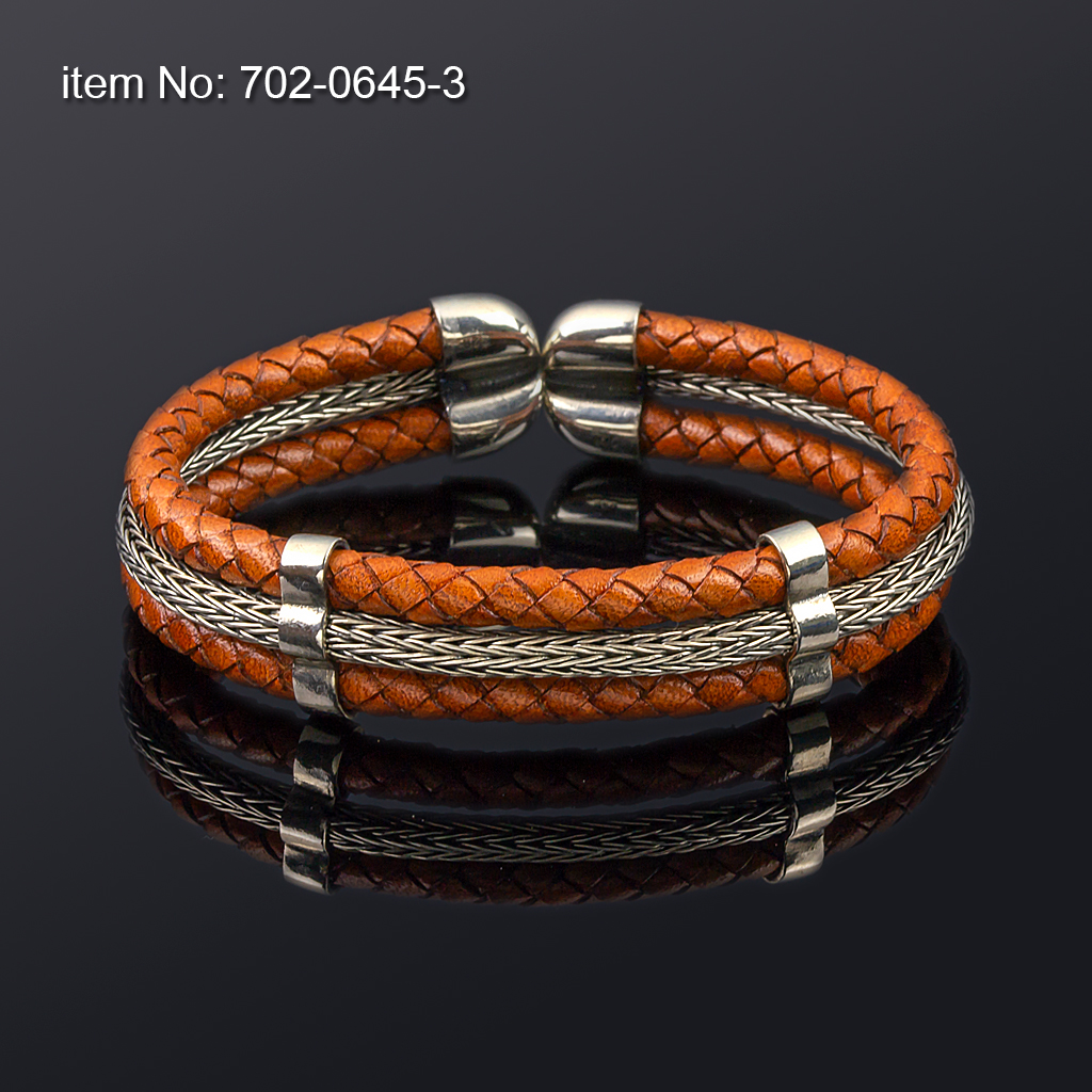 Ασημένιο flex βραχιόλι με γνήσιο tan δέρμα 5 mm - Πατήστε εδώ για περισσότερα χρώματα -