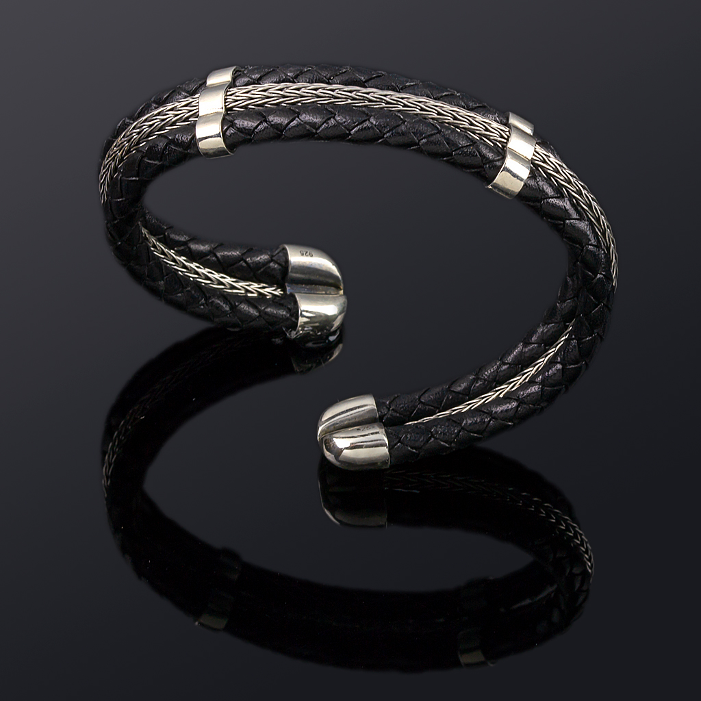 Ασημένιο flex βραχιόλι με γνήσιο tan δέρμα 5 mm