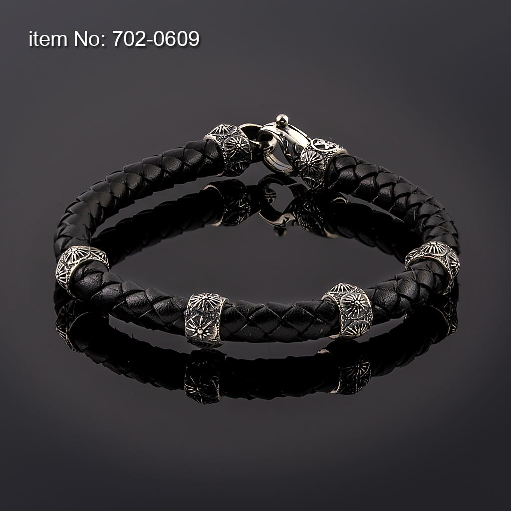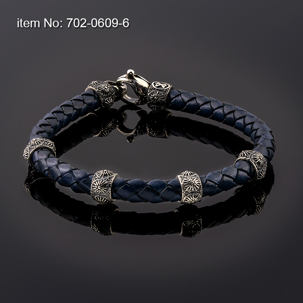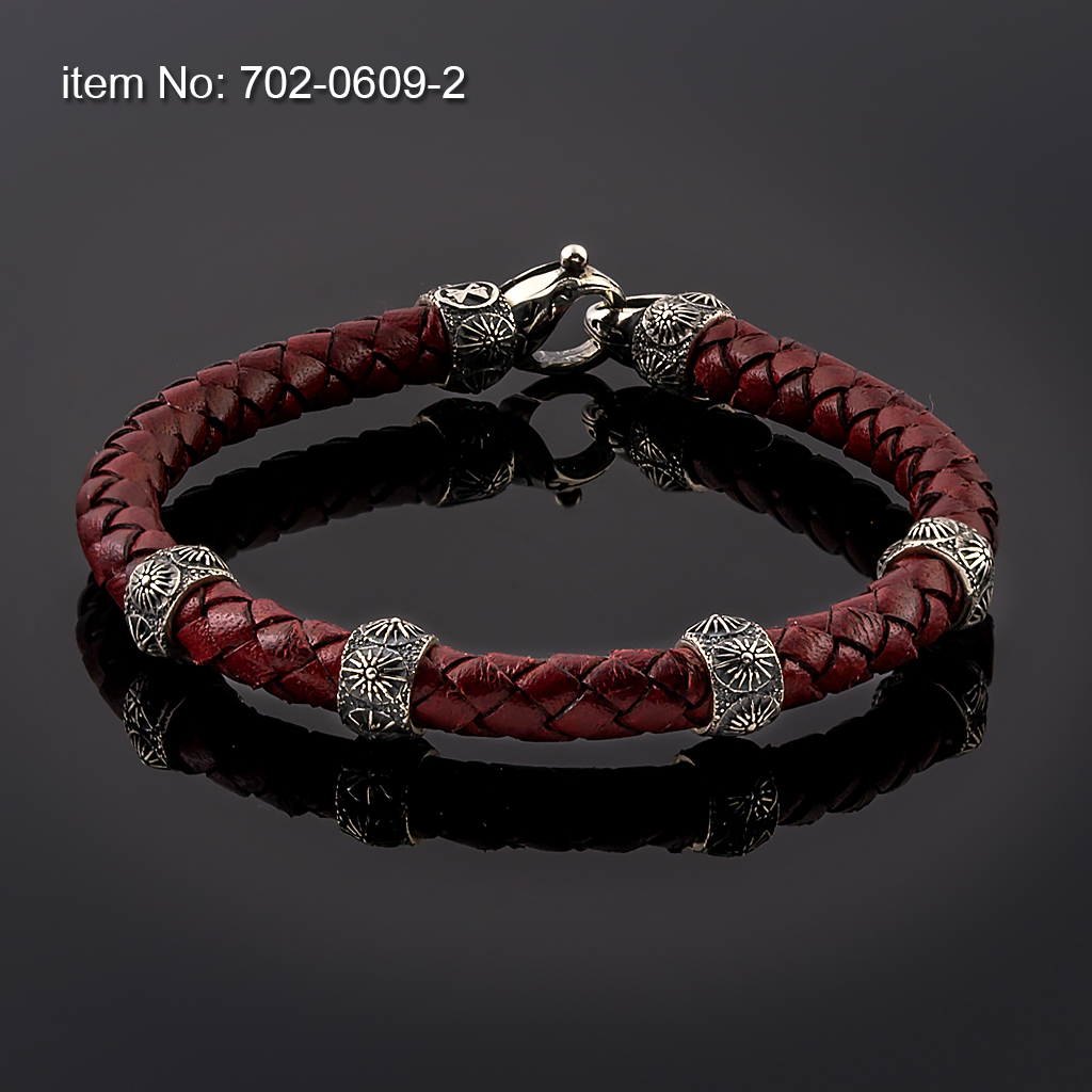 Βραχιόλι με ασημένια στοιχεία ήλιο της βεργίνας και γνήσιο δέρμα - Πατήστε εδώ για περισσότερα χρώματα -