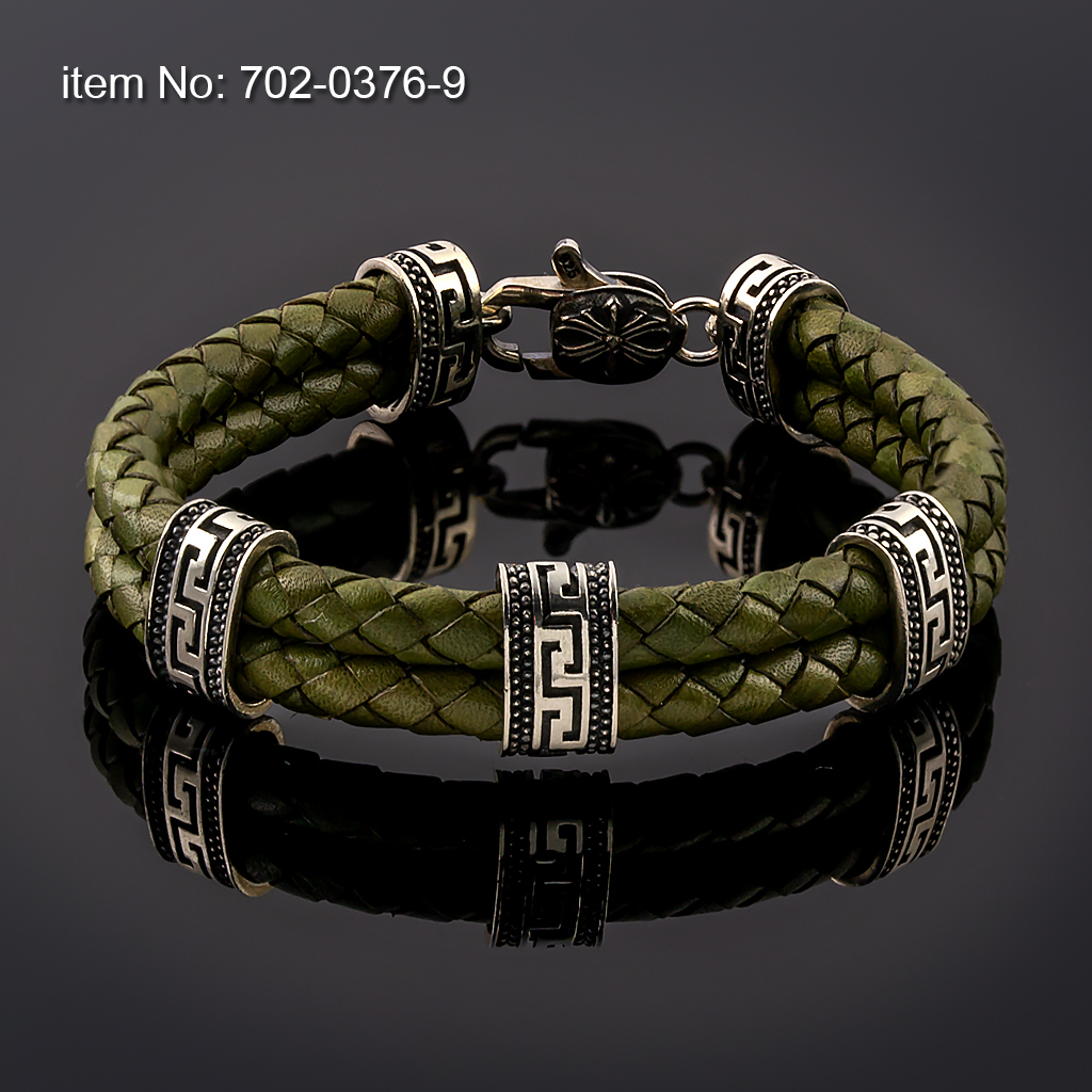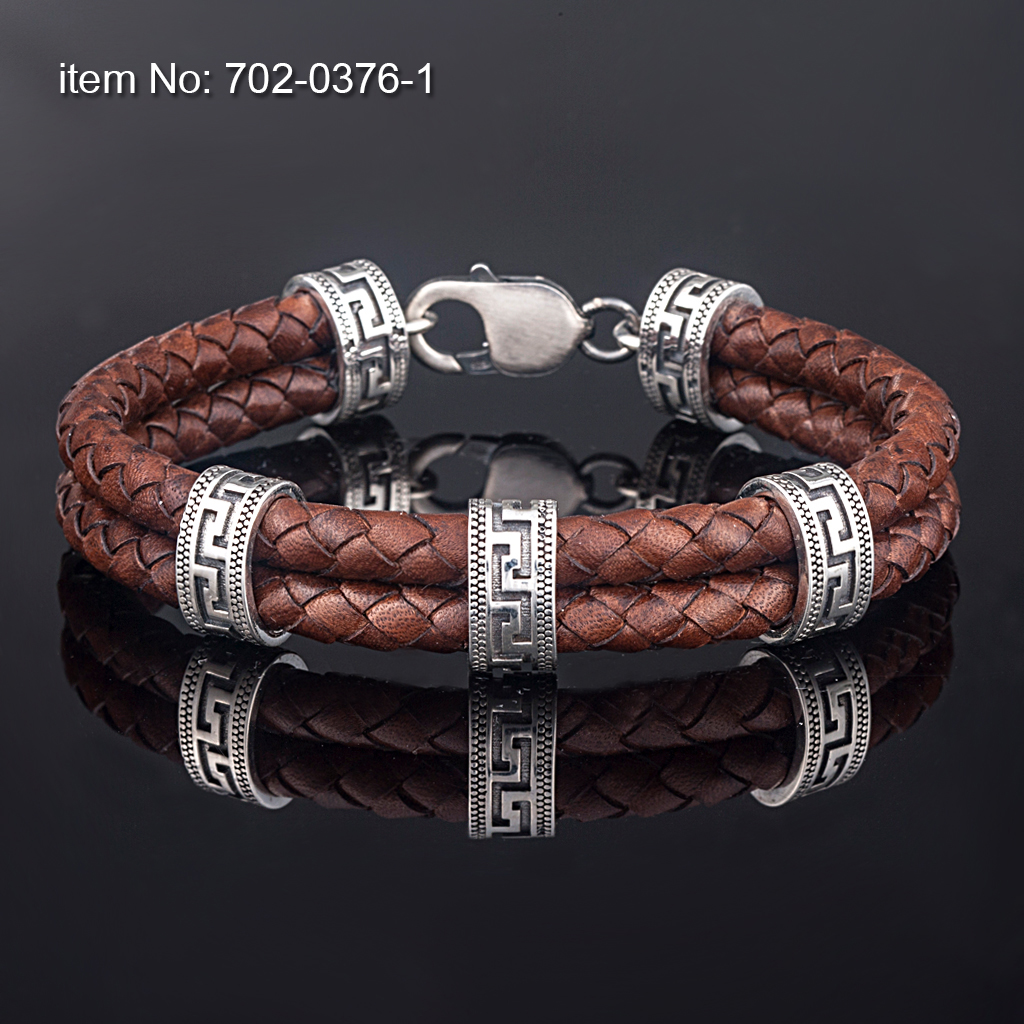 Ασημενιο βραχιόλι 925° με μοτιφ Μαίανδρο (15 mm) και με γνήσιο πλεκτό δέρμα - Πατήστε εδώ για περισσότερα χρώματα -