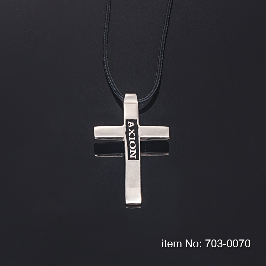 Ασημένιο κολιέ με γυαλισμένο σταυρό με το λογότυπο ΑXΙΟΝ