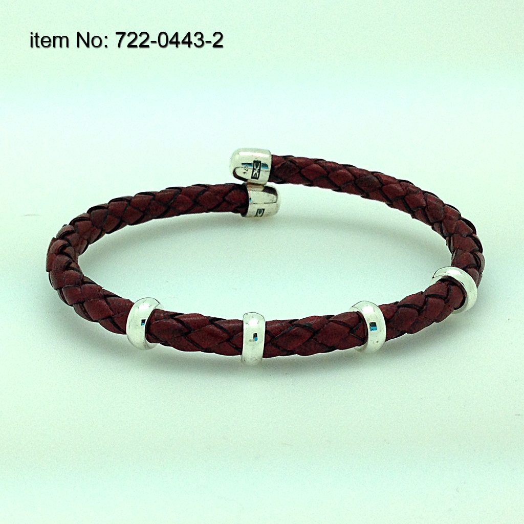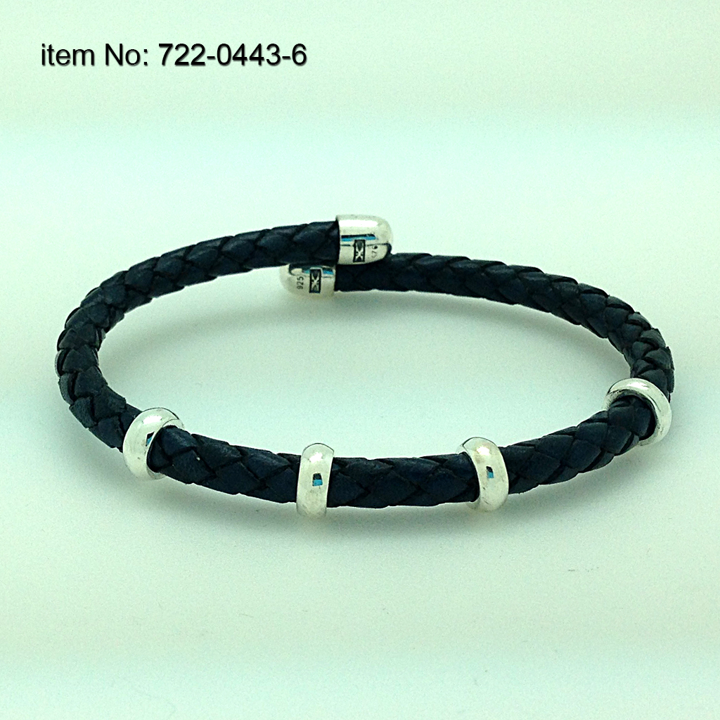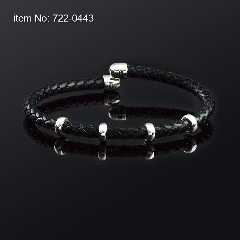 Sterling silver bracelet with washers and genuine braided black leather - Click here for more colors -